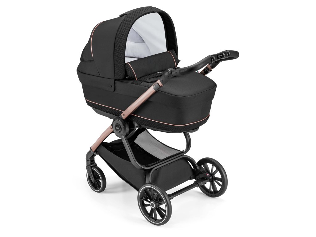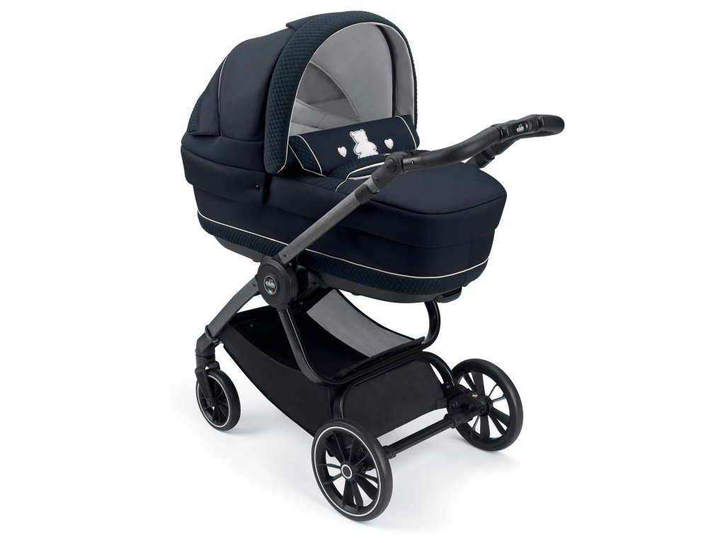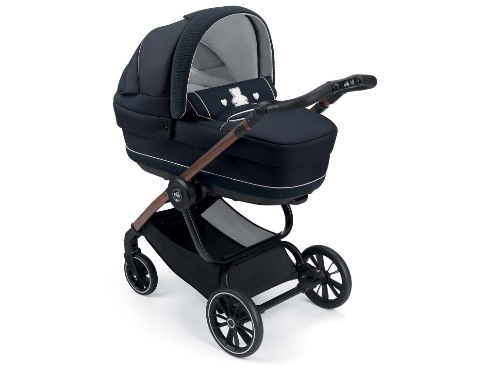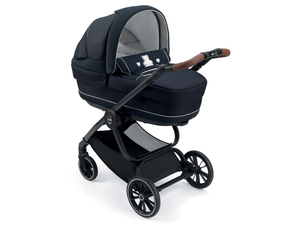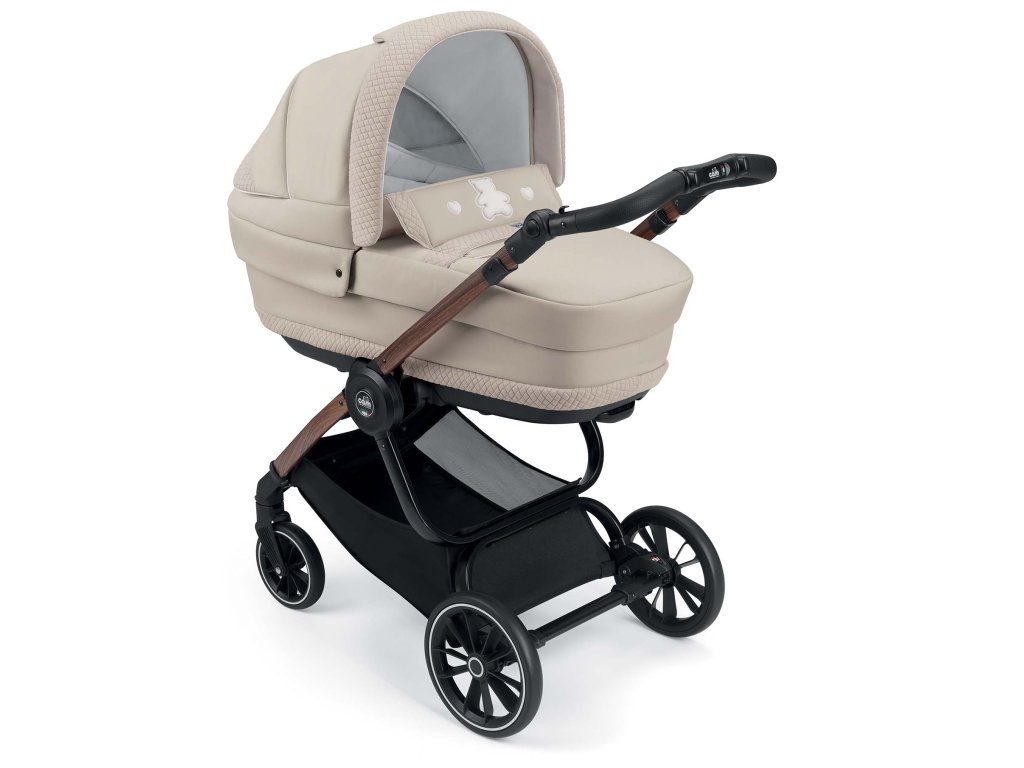 Priestranná korba je potiahnutá prešívanou látkou v romantickom prevedení – s ozdobným bielym prešívaním a motívom medvedíka a dvoma srdiečkami. Pre bezpečnejšiu manipuláciu vanička disponuje jednoduchým systémom odopnutia z podvozku, a to iba pomocou jednej poistky. Po vyklopení vzpier na spodu vaničky sa dá dokonca použiť ako kolíska, čo iste využijete na ľahšie zaspávanie dieťatka doma či na cestách. Rytmické pohyby totiž malé deti milujú. Pripomína im dobu, kedy boli ešte u mamičky v brušku. Navyše, pre dieťatko sa vám môže hodiť tiež výškové polohovanie hlavičky.