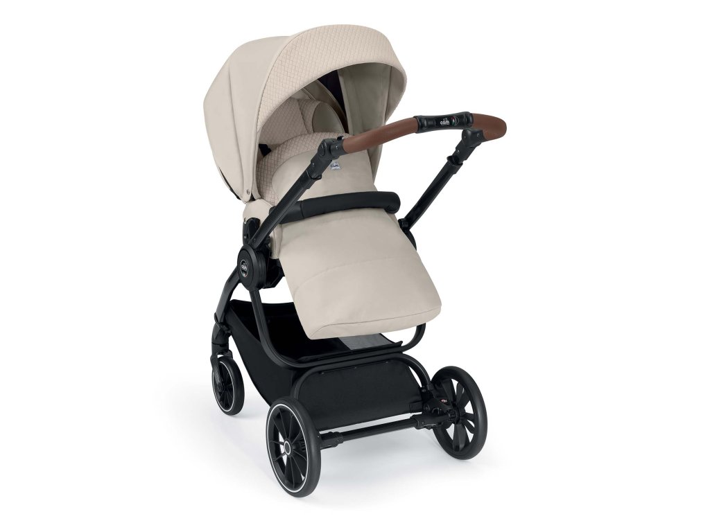Vanička kočíka CAM Techno je vďaka kvalitnému vetraniu ideálna pre letné mesiace. A naopak, v prípade nepriaznivého počasia vám dobre poslúži mohutná strieška a nánožník s vysokým zatienením. Ten sa pre pohotový prístup k dieťaťu ľahko odopína pomocou zipsov.