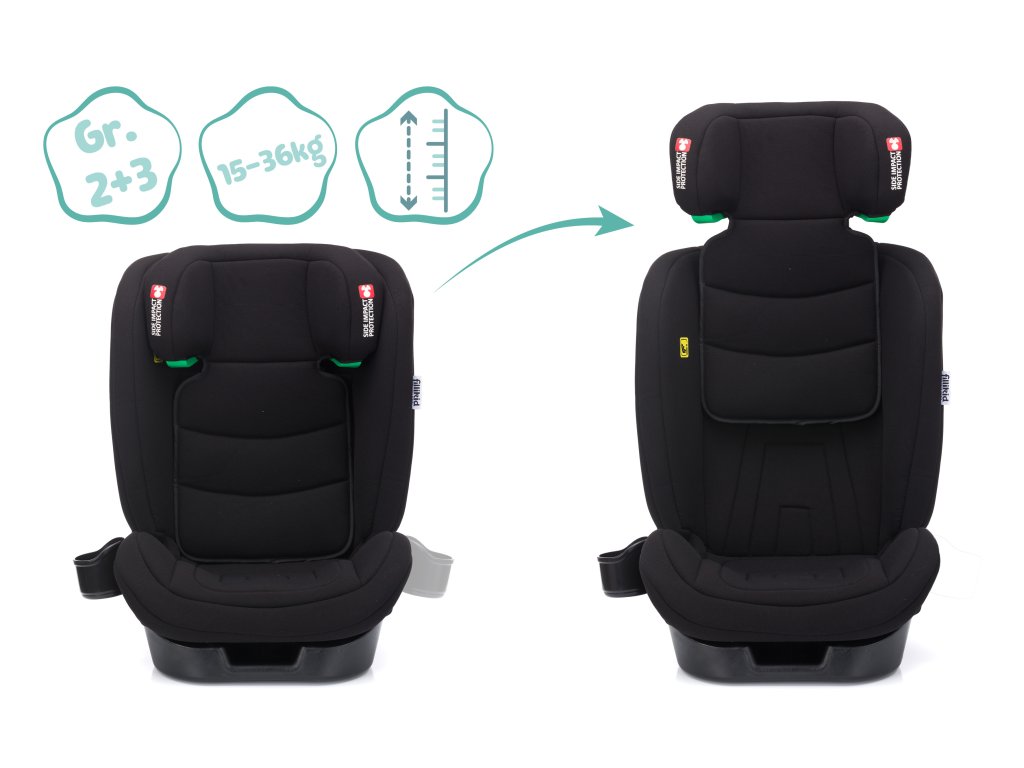 Autosedačka s novým standardem Isofix i-size, skupina 2+3. Pro děti od 100 cm - 150 cm (15 - 36 kg), variabilní ISOFIX, zádová opěrka nastavitelná do 3 poloh a nastavitelná opěrka hlavy. Ochrana proti bočnímu nárazu. K dispozici držák nápojů.