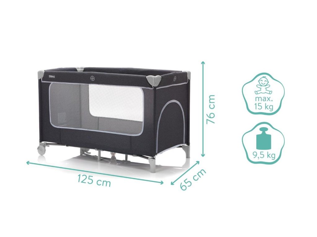 - Součásti dodávky: cestovní postýlka, 3 cm pohodlná matrace a taška na přenášení