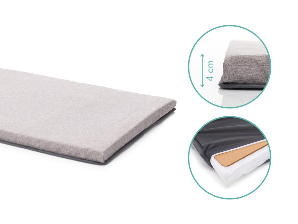 Cestovní postýlka s komfortní matrací od Fillikid byla vyvinuta s velkým cílem, aby cestování se skládací dětskou postýlkou bylo co nejjednodušší a nenákladné, aniž byste se museli obejít bez jakéhokoli pohodlí. Tato postel s komfortní matrací v ceně vám ušetří dokupování matrace do cestovní postýlky a přesto se vaše dítě nemusí obejít bez výhod dobré matrace. Je to téměř jediná cestovní postýlka na trhu, která je dodávána nejen s lehce polstrovaným základem, kterému se u mnoha cestovních postýlek často mylně říká matrace, ale se skutečnou matrací o tloušťce 3 cm. Přiložená matrace je vyplněna speciální studenou pěnou, která Vašemu dítěti nabízí co největší pohodlí a zároveň dostatečnou tuhost. Navíc matrace je snímatelná a pratelná a lze ji snadno složit kolem lůžka pro přepravu a uložit do přiložené tašky. Protože k této posteli nepotřebujete extra matraci do cestovní postele, ušetříte na jedné straně peníze a také místo při cestování nebo při skladování doma. Cestovní postýlka s komfortní matrací je proto ideální i jako přistýlka pro příbuzné nebo do druhého domova. Cestovní postýlka je nejen praktická, ale i vizuálně poutavá: kvalitní melanžový potah v šedé barvě velmi dobře ladí s obývacím pokojem a má kvalitní a moderní vzhled. Velké síťované plochy poskytují dostatečnou ventilaci a protiskluzový otvor se zipem umožňuje vašemu malému miláčkovi samostatné nastupování a vystupování. S pomocí fixovatelných koleček se postel také velmi snadno přemisťuje.