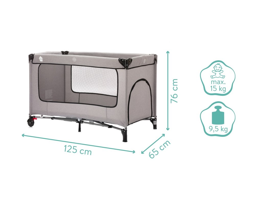 - Součásti dodávky: cestovní postýlka, 3 cm pohodlná matrace a taška na přenášení