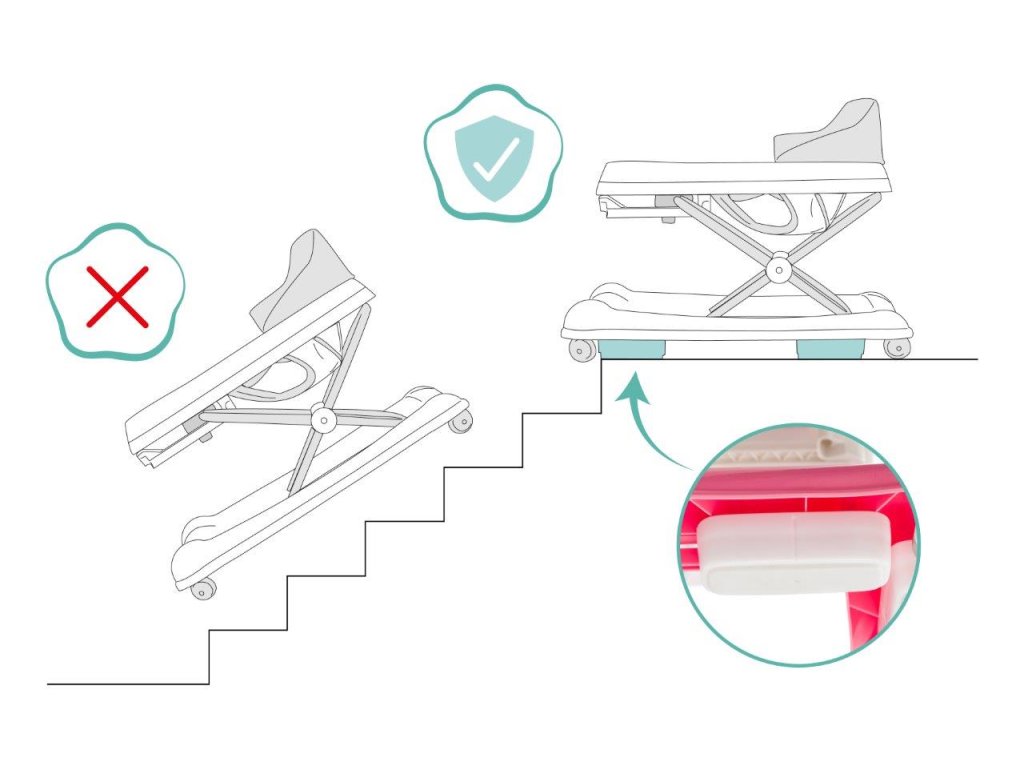 Vaše dítě se bude v měkkém sedátku s vysokým opěradlem cítit pohodlně. Díky výškovému nastavení lze chodítko od fillikid přizpůsobit velikosti dítěte. Integrované zarážky na schody zaručují maximální bezpečnost.