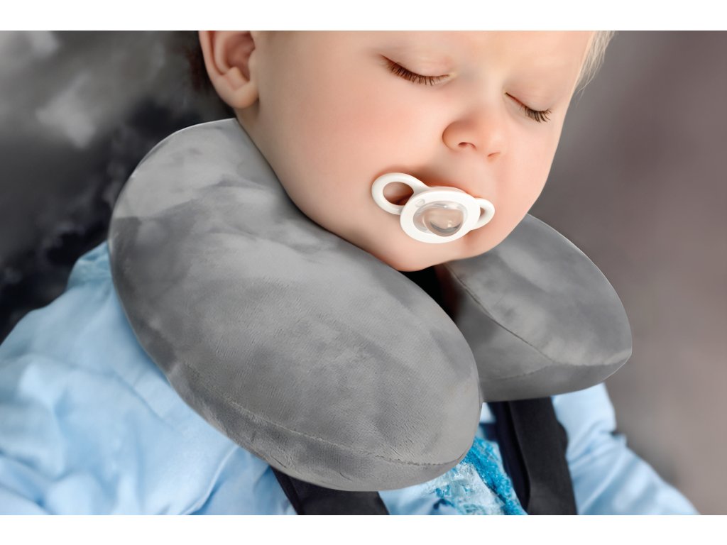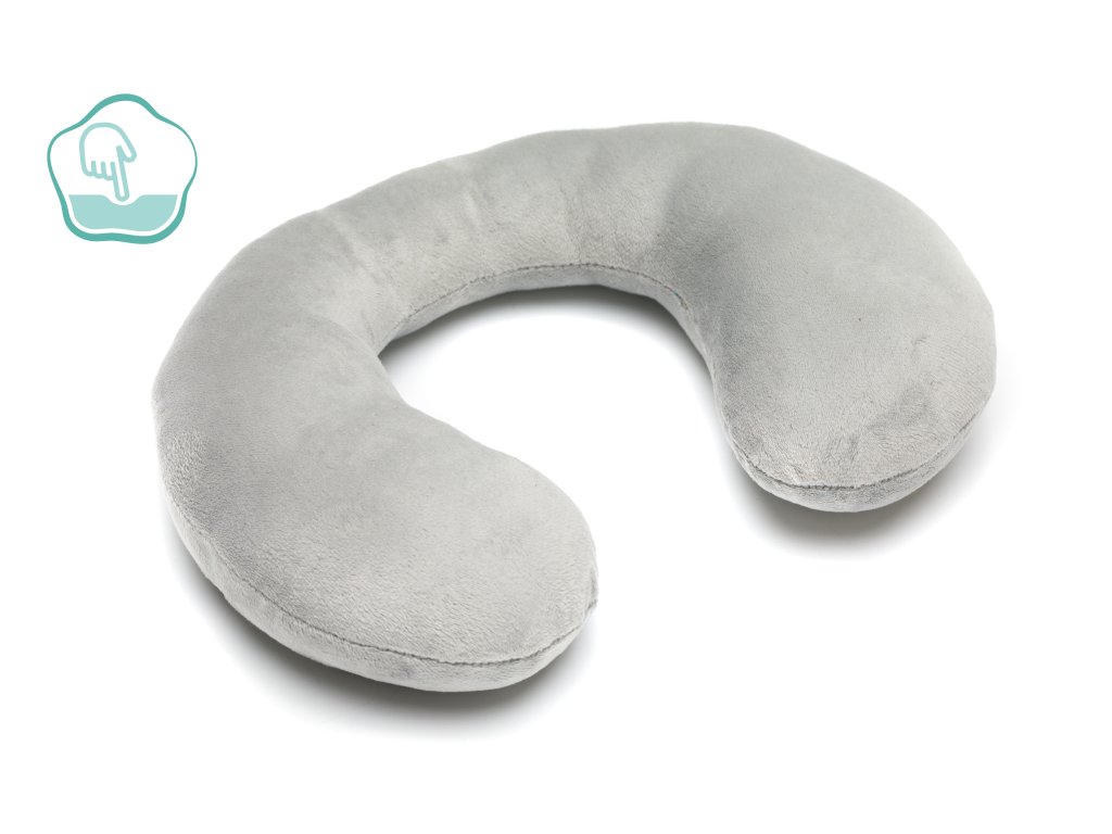 Pohodlný krční polštářek s plyšovým povrchem, ergonomicky tvarovaný.