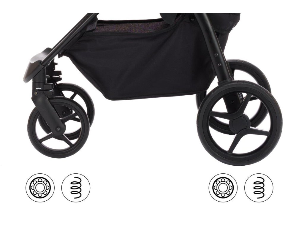 Velká kola s kuličkovými ložisky a odpružením vás bezpečně a pohodlně převezou po jakémkoli povrchu, bez ohledu na to, jak je drsný.