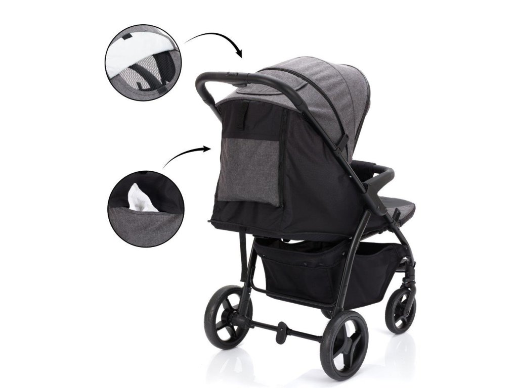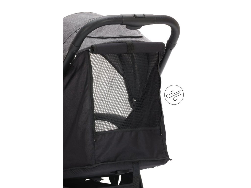 Velká větrací síť na zadní straně kočárku zajišťuje správnou cirkulaci vzduchu i v horkých dnech. .