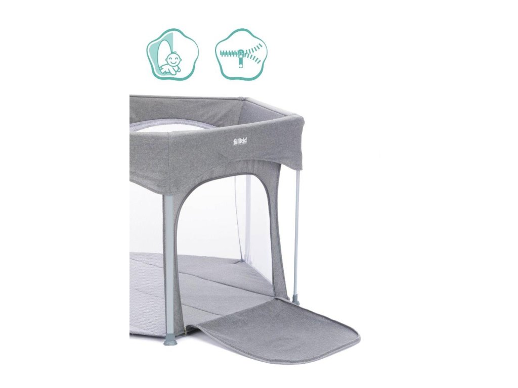 - Boční panely ze síťoviny umožňují volnou cirkulaci vzduchu v ohrádce