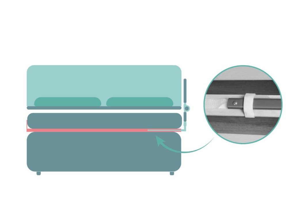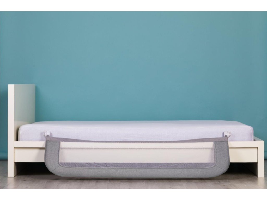 Už se nemusíte bát, že se ve velké posteli něco stane. Rychle sestavitelná, lehká a snadno přenosná, je také ideálním společníkem na cestách. Pro montáž stačí nasadit na rošt, utáhnout bezpečnostní pás a položit matraci zpět nahoru. Pomocí speciální skládací funkce lze zábranu přes den sklopit a v noci zase postavit.