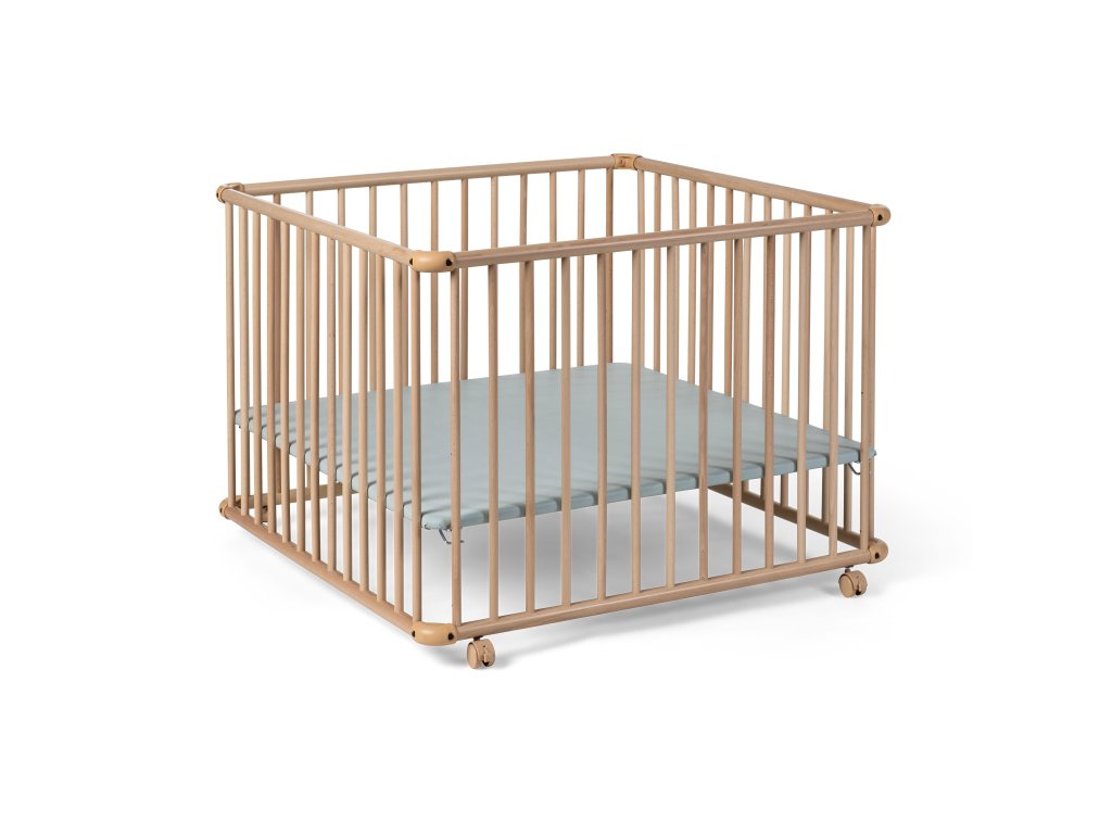 Je vyrobena z masivního bukového dřeva, zaoblené rohové části jsou vyrobeny z odolného plastu. K dispozici je ve 2 velikostech. S menší ohrádkou lze dokonce projet dveřmi, pokud nejsou užší než 80 cm. Všechny použité barvy, tkaniny a další součásti ohrádky jsou odolné vůči slinám a bez škodlivých látek, splňující vysoké standardy požadované pro hračky a dětské výrobky.