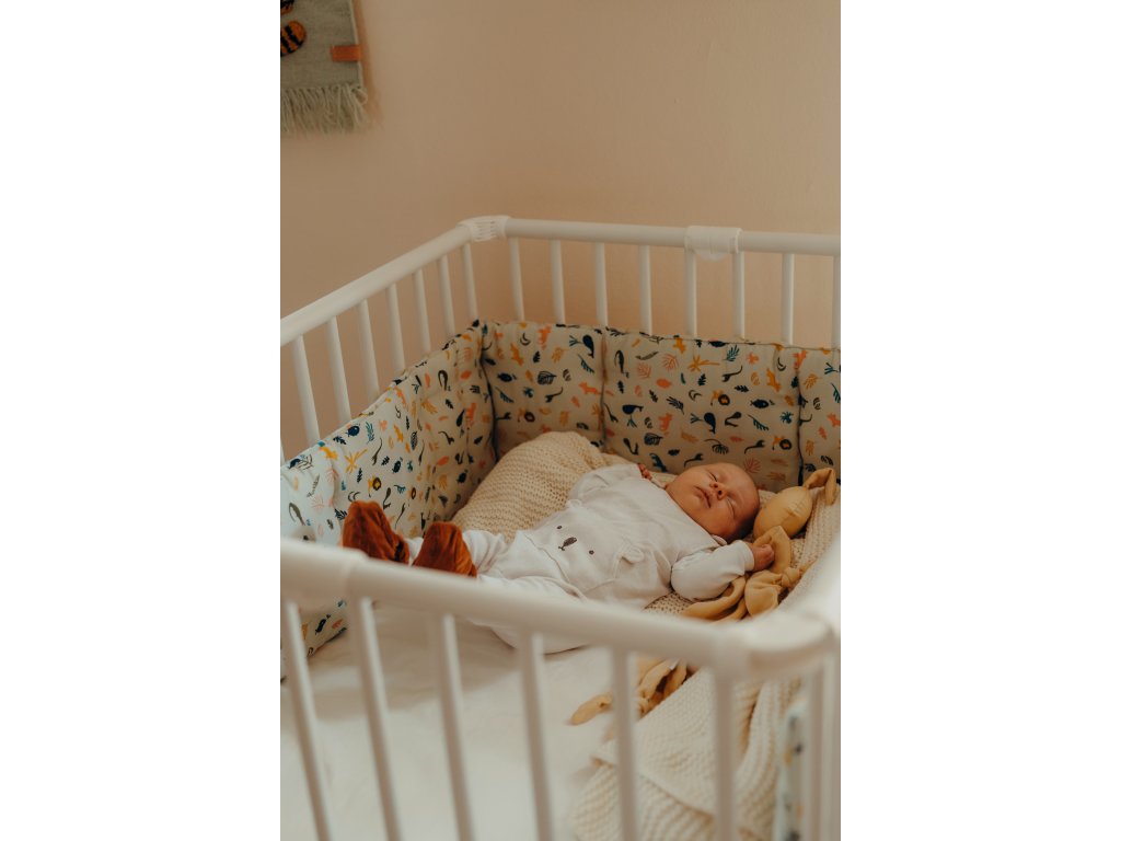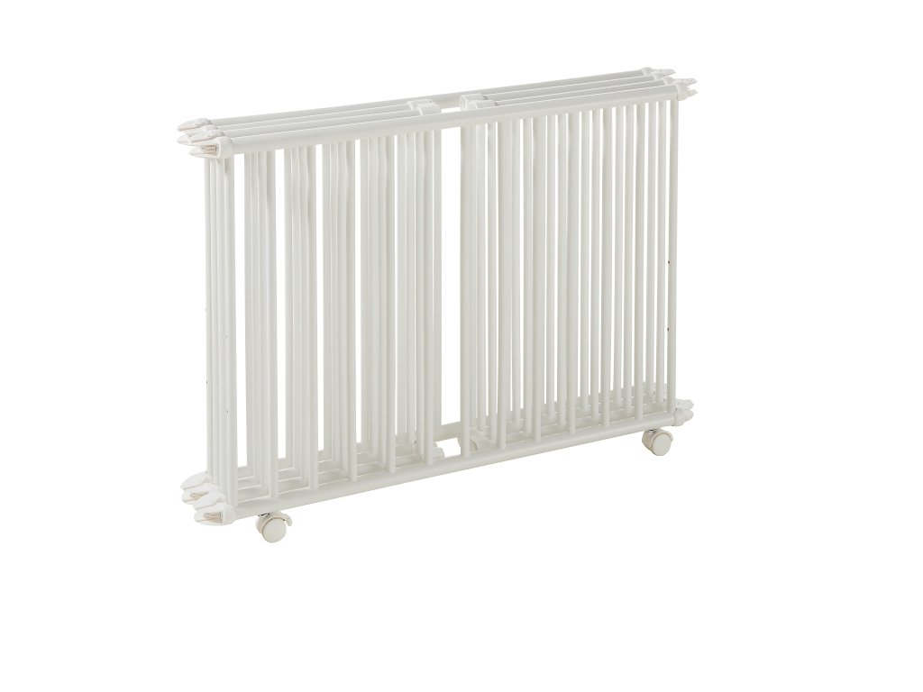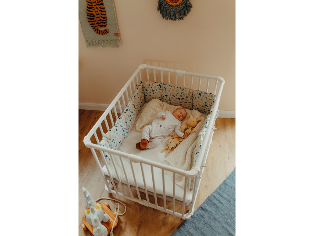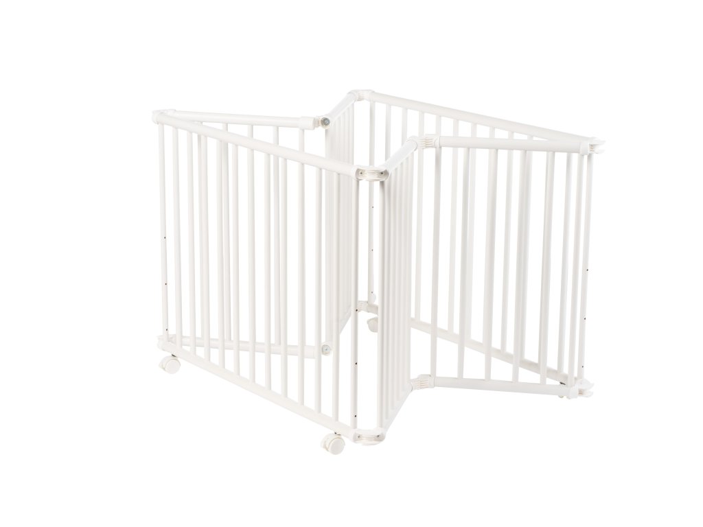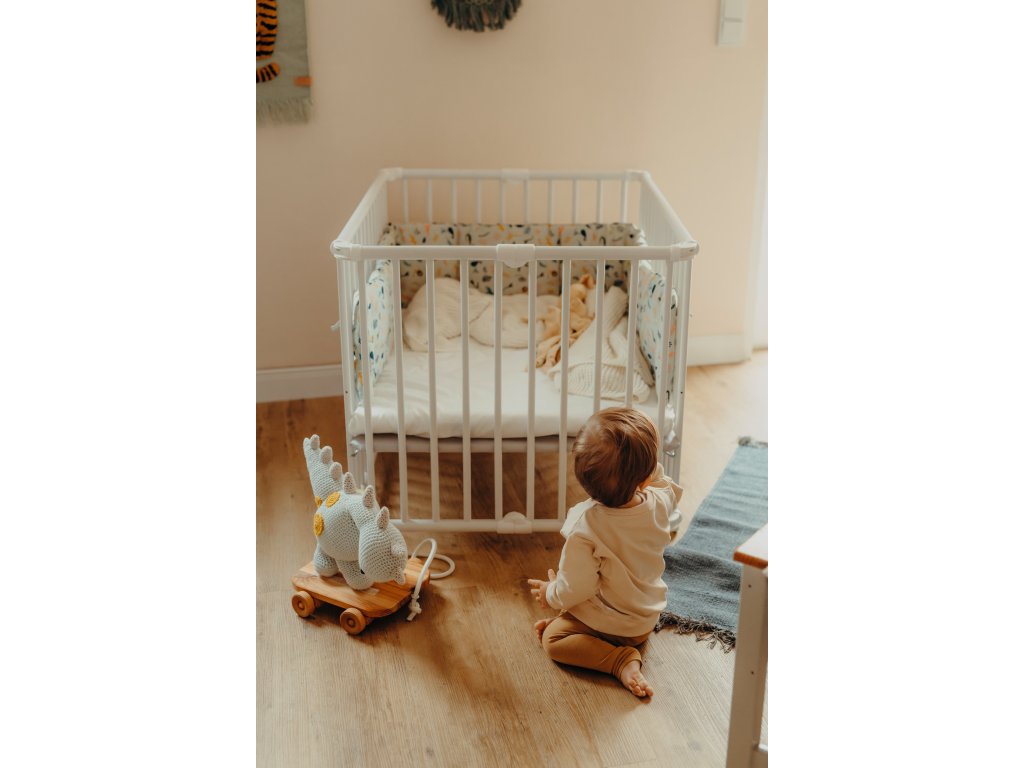 Pokud ohrádku zrovna nepotřebujete, lze ji jednoduše složit a uložit , aniž by zabírala příliš mnoho místa. Je možné ji také využít jako cestovní ohrádku či postýlku.