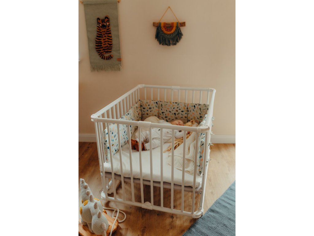 Tato ohrádka je ideálním a bezpečným místem, kde si vaše dítě může hrát, zkoušet chodit i spát. Je vyrobena z masivního bukového dřeva. Zaoblené rohové části jsou vyrobeny z odolného plastu.
