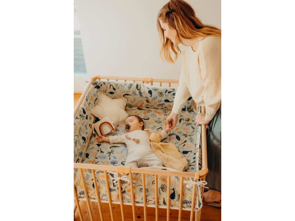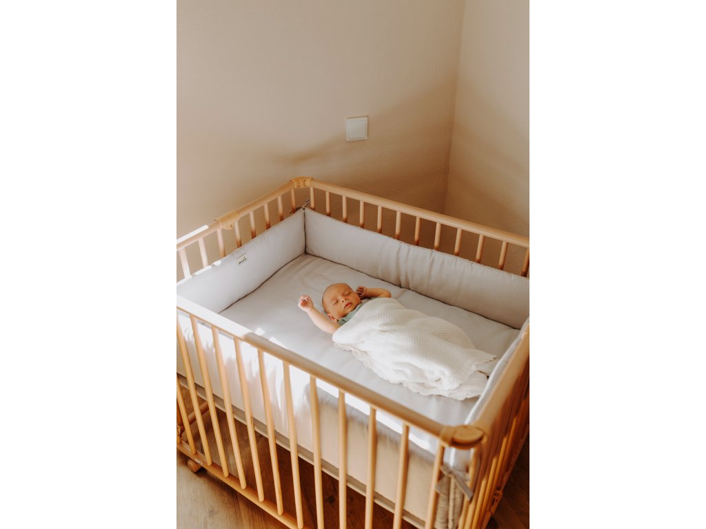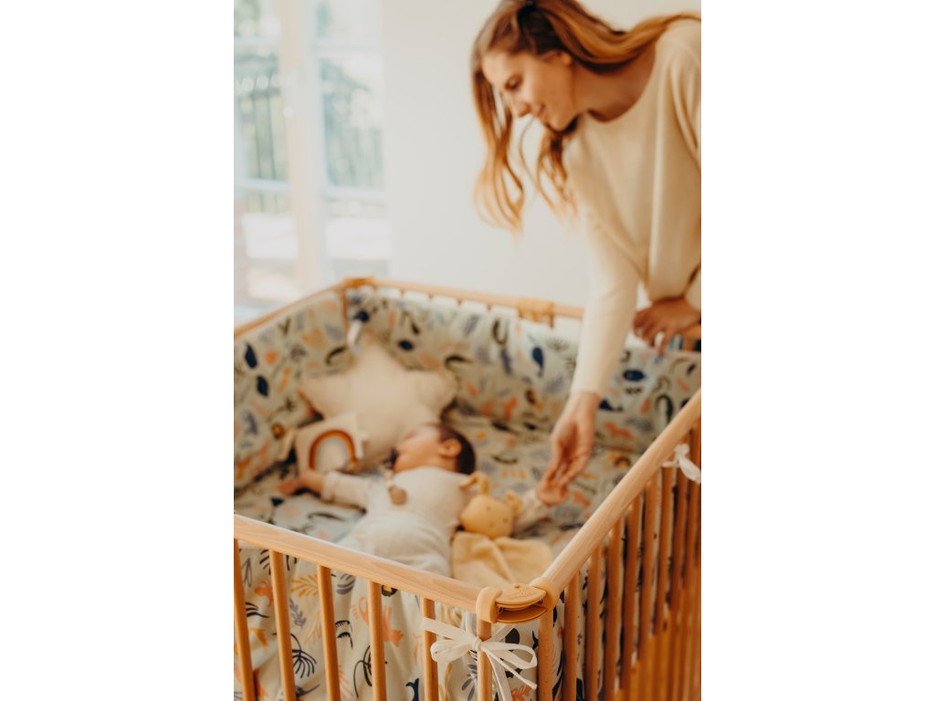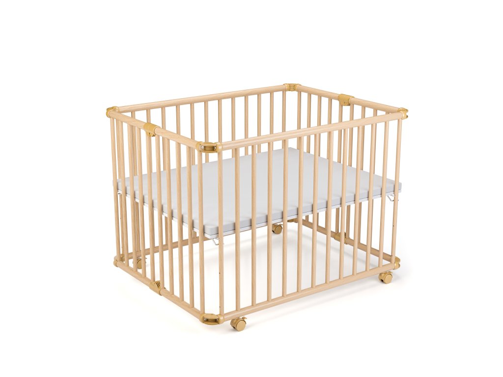 Tato ohrádka je ideálním a bezpečným místem, kde si vaše dítě může hrát, zkoušet chodit i spát. Je vyrobena z masivního bukového dřeva. Zaoblené rohové části jsou vyrobeny z odolného plastu.