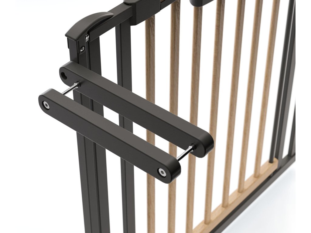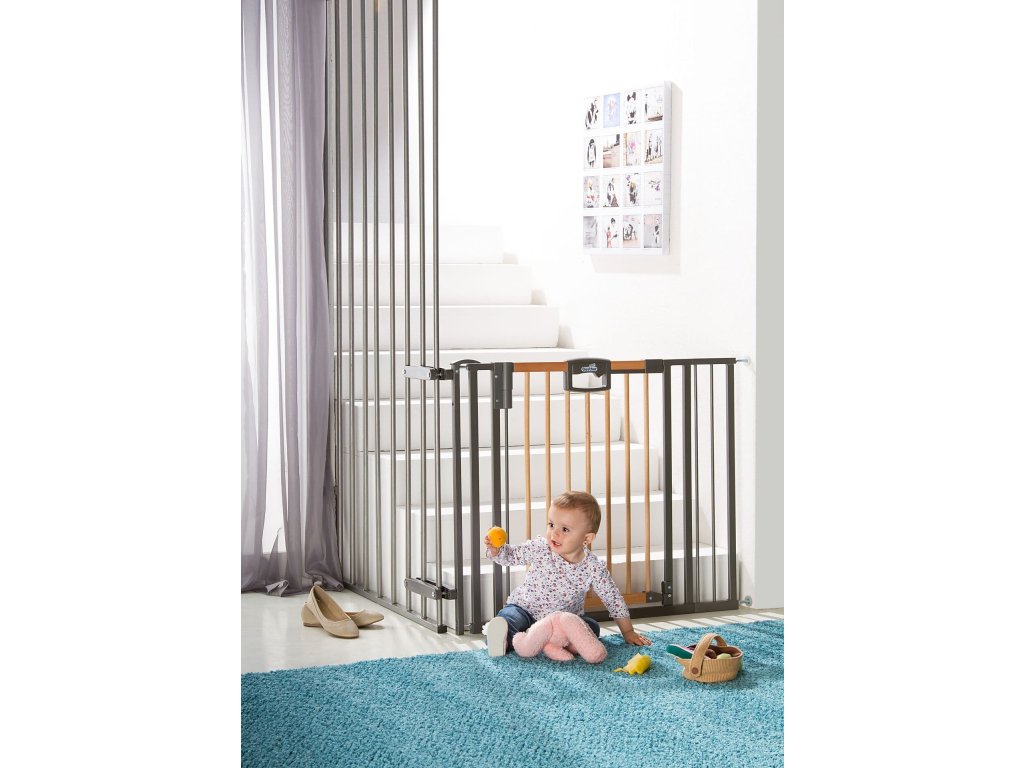 Jakmile vaše děti začnou lézt, chtějí začít zkoumat své prostředí. V tak nízkém věku však ještě nedokáží rozpoznat a správně posoudit nebezpečí. To může často vést k drobným, ale i vážnějším nehodám. Aby si děti mohly užívat bezstarostné objevování světa kolem sebe, je třeba přijmout správná opatření, aby jejich prostředí bylo bezpečné. Tlaková bezpečnostní zábrana Easylock Plus v provedení dřevo/kov zaručuje bezpečné držení a je extrémně pevná.