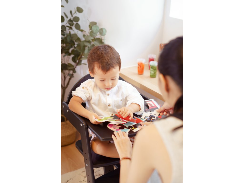 Dětská židlička z masivního dřeva, vč. jídelního a hracího pultu, roste s vaším dítětem. Díky nosnosti 85 kg ji lze využívat od batolete až po dospívání. Extra vysoké opěradlo optimálně podpírá záda. Stupátko a sedák lze snadno a rychle nastavit podle potřeb dítěte, pomocí imbusového klíče, který je součástí balení.