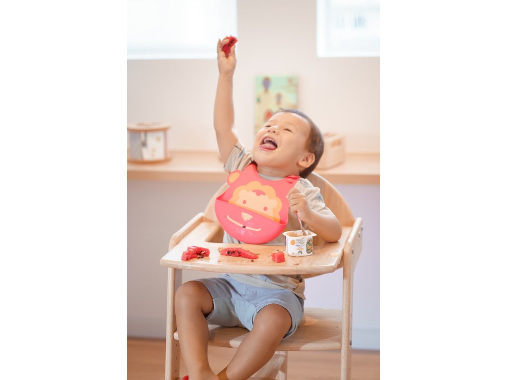 Bezpečné sezení zaručuje 3bodový bezpečnostní pás, jídelní a hrací pult, který lze v případě potřeby odstranit. Redukce sedáku nebo podsedáku je k dispozici samostatně.