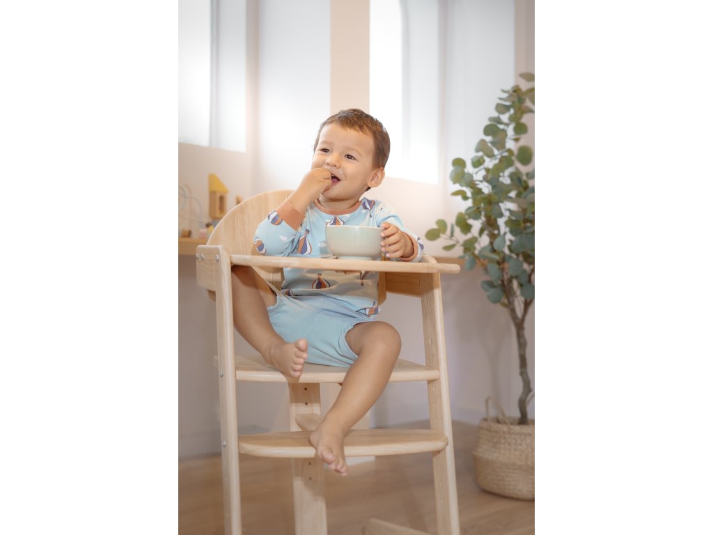 Dětská židlička z masivního dřeva, vč. jídelního a hracího pultu, roste s vaším dítětem. Díky nosnosti 85 kg ji lze využívat od batolete až po dospívání. Extra vysoké opěradlo optimálně podpírá záda. Stupátko a sedák lze snadno a rychle nastavit podle potřeb dítěte, pomocí imbusového klíče, který je součástí balení.