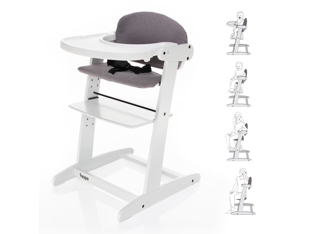 už názov napovedá, jedálenská stolička Grow Up sa prispôsobuje rastúcim deťom, a to od 6 mesiacov veku. Vďaka možnosti