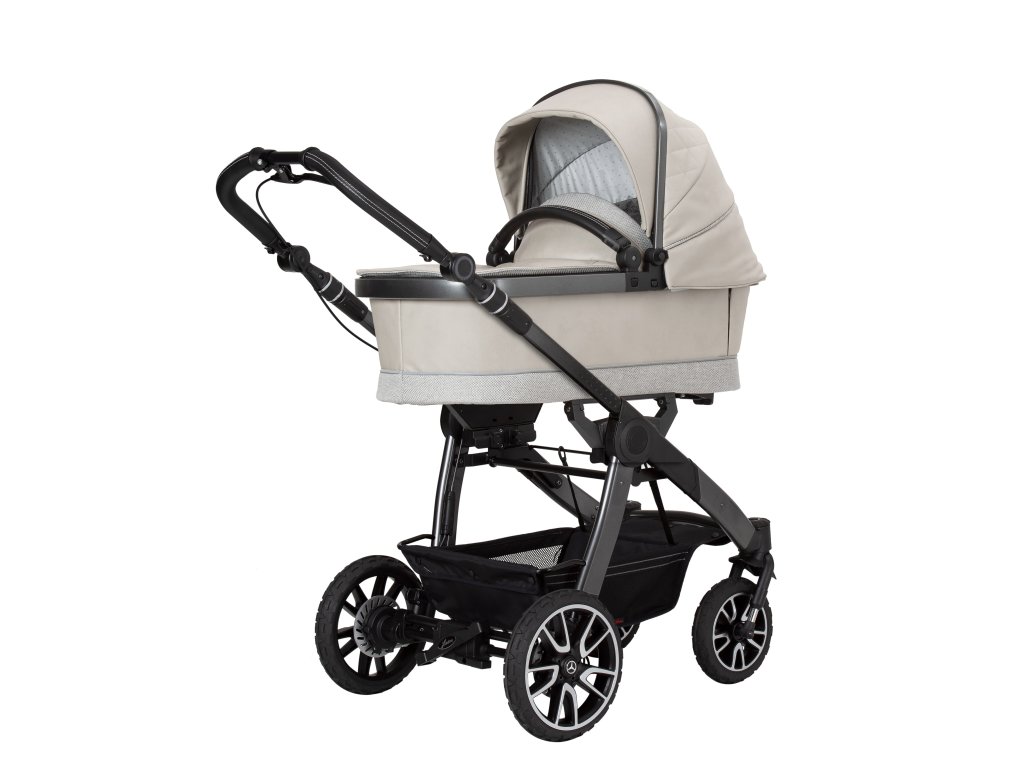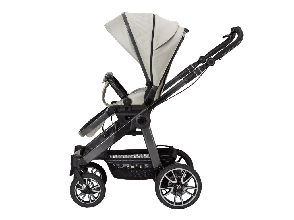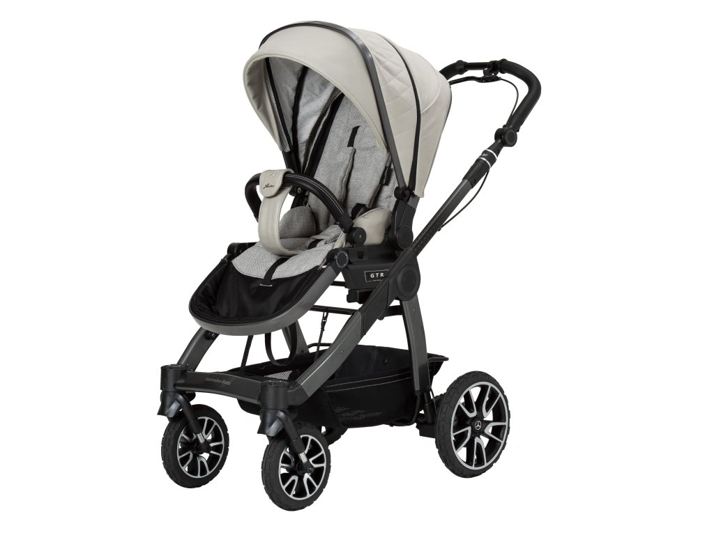 Nový model kočárku „All-Terrain GTR“ doplňuje oblíbenou kolekci Mercedes-Benz, která byla vyvinuta ve spolupráci s týmem Mercedes-Benz Design Team, a je perfektní volbou pro všechny rodiče. Kočárek All-Terrain GTR je vybaven superlehkými koly se vzduchovou komorou. Kola na kuličkových ložiskách a s přilnavými pneumatikami a nabízí maximální mobilitu v terénu. Extra velká uzamykatelná jednotlivá otočná kola s odpružením, zajišťují pohodlnou jízdu na jakémkoli povrchu. Sedačku GTR lze z rámu jedoduše vyjmout a je reverzibilní. Magnetický 5bodový bezpečnostní pás a odnímatelné madlo s funkcí vstupu a bezpečnostním zámkem nabízí optimální bezpečnost pro nejmenší. Vícenásobně nastavitelnou zádovou opěrku lze nastavit do ploché polohy vleže. Klimatická zóna zajišťuje optimální cirkulaci vzduchu v kočárku. Navíc je zde dvojitá výklopná sluneční clona, která zajistí optimální ochranu před sluncem pro vaše děti. Kočárek All-Terrain GTR má navíc extra dlouhý, vícenásobně nastavitelný podnožník.. Výškově nastavitelná rukojeť umožňuje rodičům různých velikostí pohodlně tlačit kočárek.