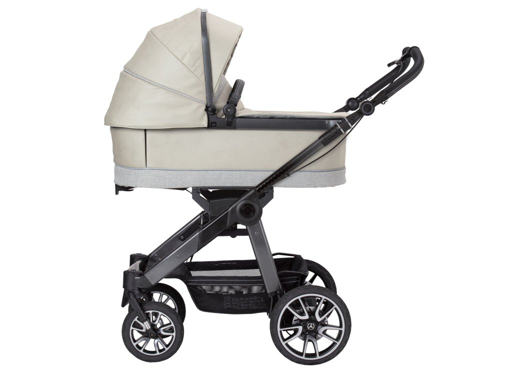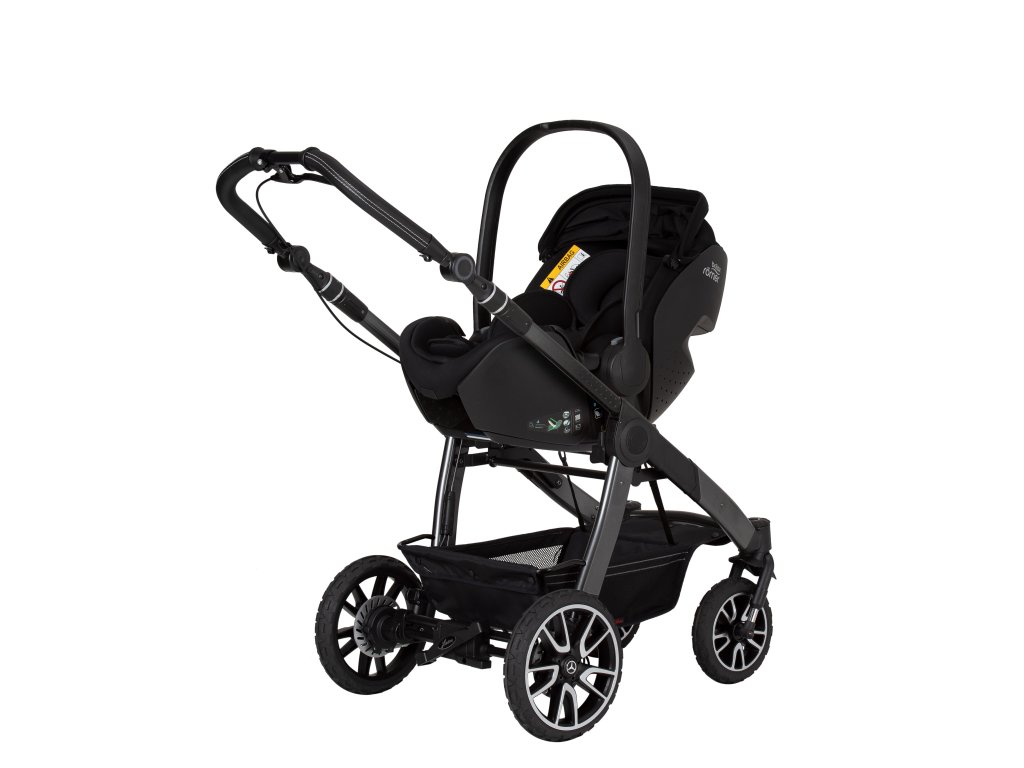 Mimořádné designy završuje elegantně zbarvený podvozek se vzorem Mercedes-Benz a magneticky uzamykatelný pásový systém, který se extrémně snadno ovládá a pohodlně se nastavuje. Navíc jsou zde dvojité vyklápěcí sluneční clony, které zajistí optimální ochranu před sluncem pro vaše děti. Bag2Go je součástí standardního rozsahu dodávky pro všechny modely. Tuto tašku, ideální na mobilní telefony, klíče, peněženky nebo láhve, lze snadno připevnit k rukojeti.
