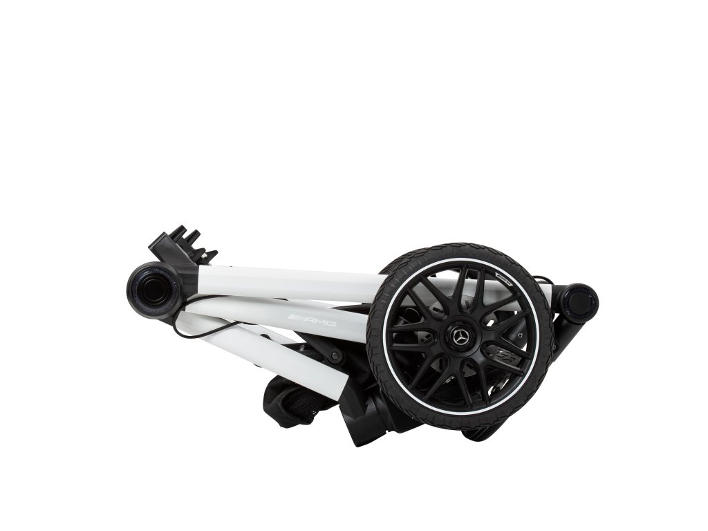 S rozměrem 69 x 58,5 x 31 cm lze AMG GT², včetně sedačky, složit ultrakompaktně. Návrháři odvedli skvělou práci. AMG GT² má nejen extrémně malou skládací velikost, ale také otočná kola, která jsou jako doma v každém terénu. Vizuálním vrcholem jsou ráfky s křížovými paprsky v originálním designu AMG.