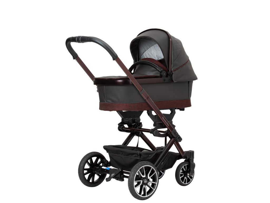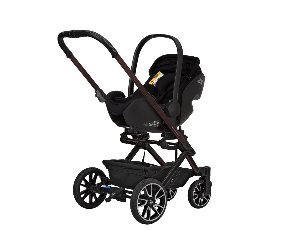 Mimořádné designy završuje elegantně zbarvený podvozek se vzorem Mercedes-Benz a magneticky uzamykatelný pásový systém, který se extrémně snadno ovládá a pohodlně se nastavuje. Navíc jsou zde dvojité vyklápěcí sluneční clony, které zajistí optimální ochranu před sluncem pro vaše děti. Bag2Go je součástí standardního rozsahu dodávky pro všechny modely. Tuto tašku, ideální na mobilní telefony, klíče, peněženky nebo láhve, lze snadno připevnit k rukojeti.