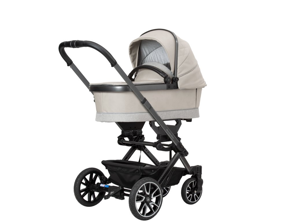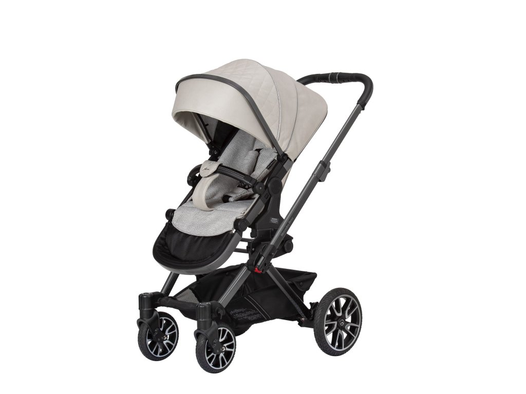 Mimořádné designy završuje elegantně zbarvený podvozek se vzorem Mercedes-Benz a magneticky uzamykatelný pásový systém, který se extrémně snadno ovládá a pohodlně se nastavuje. Navíc jsou zde dvojité vyklápěcí sluneční clony, které zajistí optimální ochranu před sluncem pro vaše děti. Bag2Go je součástí standardního rozsahu dodávky pro všechny modely. Tuto tašku, ideální na mobilní telefony, klíče, peněženky nebo láhve, lze snadno připevnit k rukojeti.