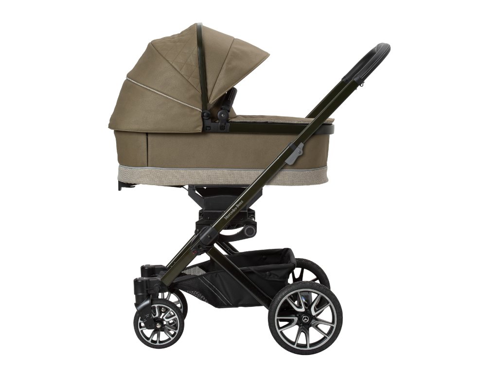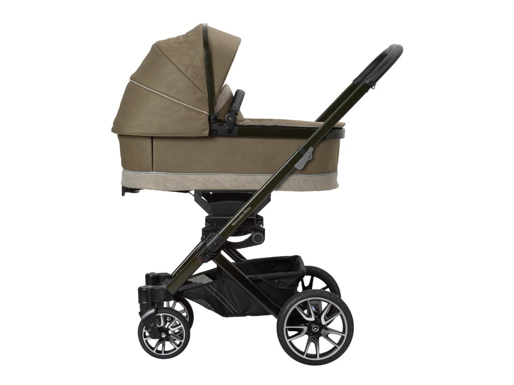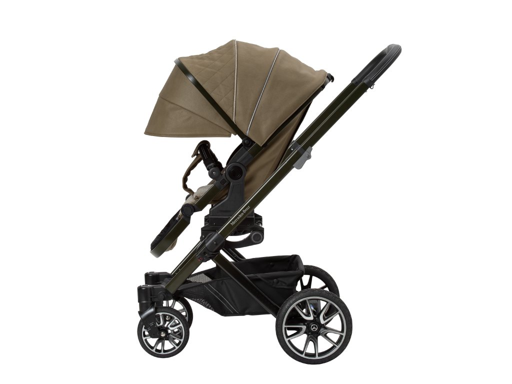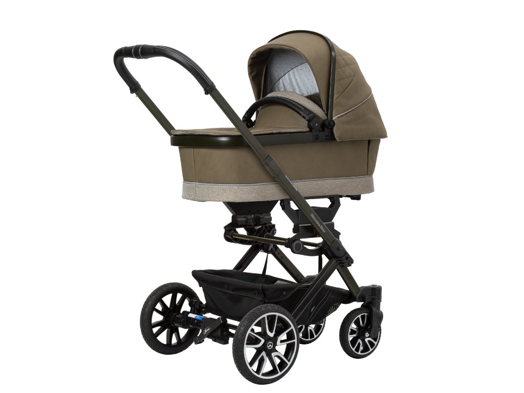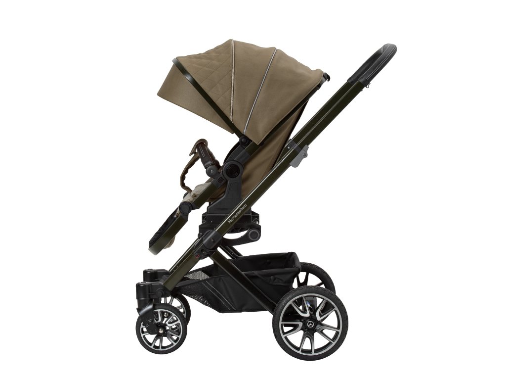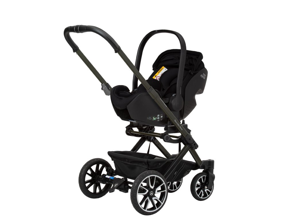 Mimořádné designy završuje elegantně zbarvený podvozek se vzorem Mercedes-Benz a magneticky uzamykatelný pásový systém, který se extrémně snadno ovládá a pohodlně se nastavuje. Navíc jsou zde dvojité vyklápěcí sluneční clony, které zajistí optimální ochranu před sluncem pro vaše děti. Bag2Go je součástí standardního rozsahu dodávky pro všechny modely. Tuto tašku, ideální na mobilní telefony, klíče, peněženky nebo láhve, lze snadno připevnit k rukojeti.