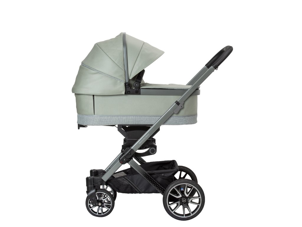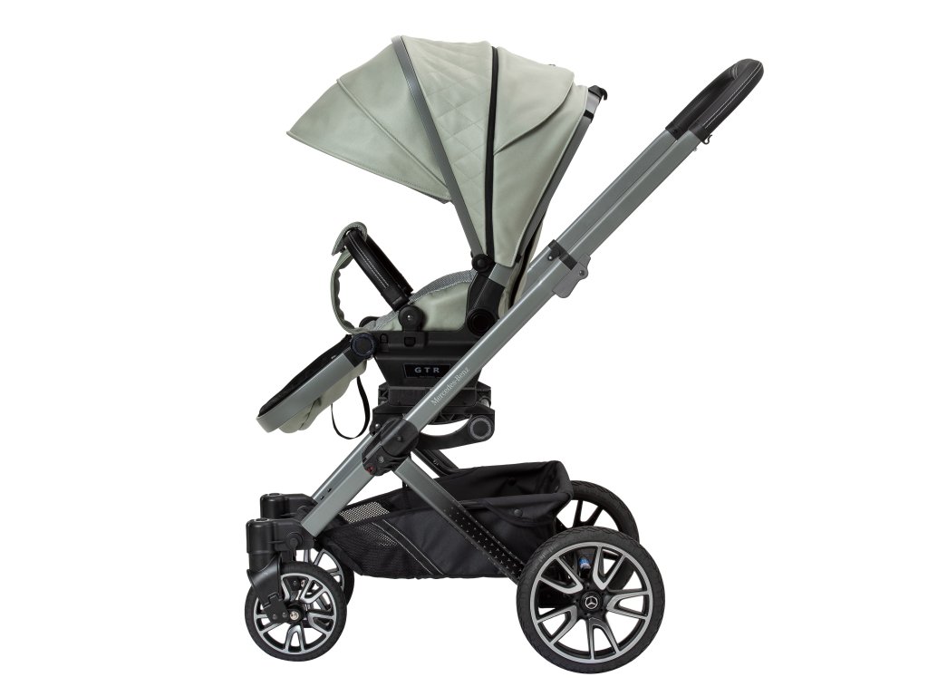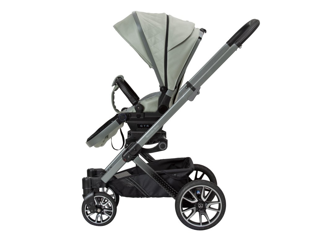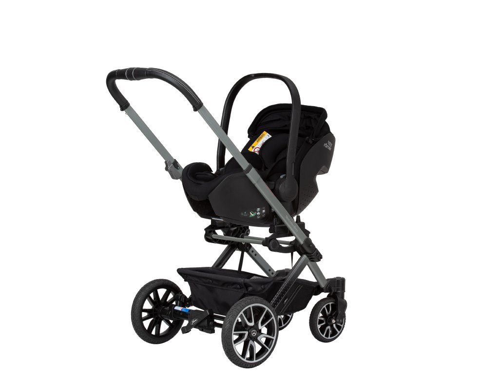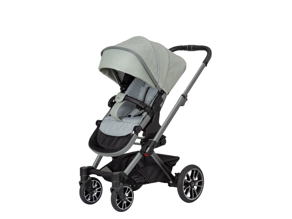 Mimořádné designy završuje elegantně zbarvený podvozek se vzorem Mercedes-Benz a magneticky uzamykatelný pásový systém, který se extrémně snadno ovládá a pohodlně se nastavuje. Navíc jsou zde dvojité vyklápěcí sluneční clony, které zajistí optimální ochranu před sluncem pro vaše děti. Bag2Go je součástí standardního rozsahu dodávky pro všechny modely. Tuto tašku, ideální na mobilní telefony, klíče, peněženky nebo láhve, lze snadno připevnit k rukojeti.