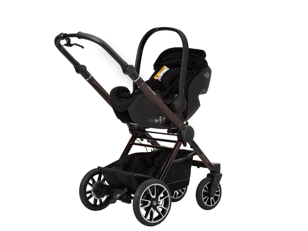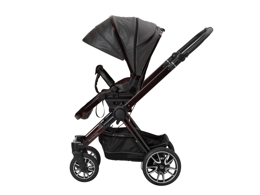 Uzamykatelná přední aretovací otočná kola s pneumatikami se vzduchovou komorou, nastavitelné odpružení a výškově nastavitelná rukojeť, dělají z kočárku Performance model pro flexibilitu v každodenním životě.