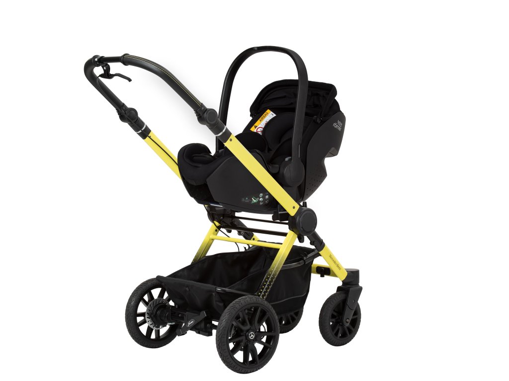 Uzamykatelná přední aretovací otočná kola s pneumatikami se vzduchovou komorou, nastavitelné odpružení a výškově nastavitelná rukojeť, dělají z kočárku Performance model pro flexibilitu v každodenním životě.