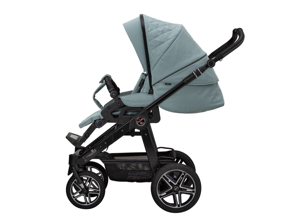 Volitelná ruční brzda na rukojeti kočárku R1 GTS z kolekce Selection poskytuje bezpečnost v jakémkoli terénu. Odpružená, extra velká přední kola nabízejí optimální jízdní vlastnosti na jakémkoli povrchu. Bezpečně aretovaná přední kola jsou ideální do města i na dobrodružné cestě přes kopce a údolí. Nové volitelné přilnavé pneumatiky GRIP nabízejí maximální mobilitu v terénu! Kočárek R1 GTS zaujme čistým potěšením z jízdy i sportovním vzhledem - skutečný sportovní kočárek.