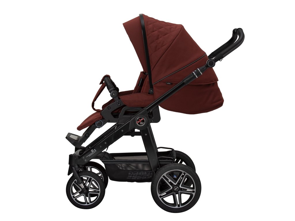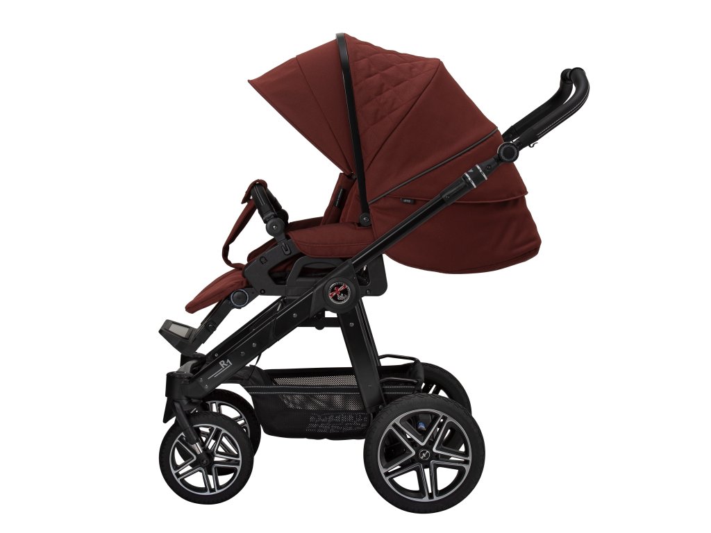 Volitelná ruční brzda na rukojeti kočárku R1 GTS z kolekce Selection poskytuje bezpečnost v jakémkoli terénu. Odpružená, extra velká přední kola nabízejí optimální jízdní vlastnosti na jakémkoli povrchu: jako otočná kola zvládají městský provoz. Zaaretovaná přední kola zůstávají bezpečně na trati i na dobrodružné cestě přes kopce a údolí. Kočárek R1 GTS zaujme čistým požitkem z jízdy i sportovním vzhledem - skutečný sportovní vůz.