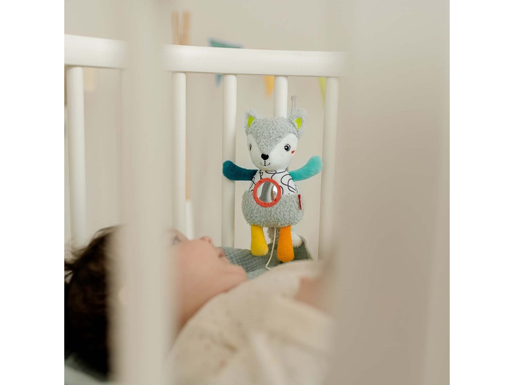 Malú hraciu líšku si vaše dieťatko okamžite zamiluje či už ako maznajúceho najlepšieho kamaráta alebo vďaka upokojujúcej melódii "Weißt du wieviel Sternlein stehien". Po natiahnutí hudobnej mechaniky zaznie obľúbená uspávanka – melódia s príjemnou hlasitosťou a tónmi uspáva vaše dieťatko k spánku. Bezpečné zrkadlo pomáha trénovať sebavedomie.