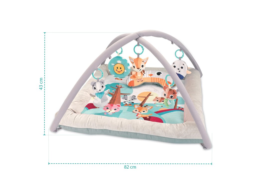 Interaktívna hracia deka 3D poskytne najmenším deťom dokonalý priestor na rozvoj a zábavu. Plyšové hračky, ktoré vydávajú po dotyku zvuky, motivujú bábätká k tréningu koordinácie oko – ruka a neskôr k úchopu.
