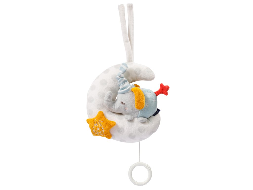 Plyšový sloník na mesiaci z mäkkého plyšového velúru upúta pozornosť každého dieťaťa na prvý pohľad. Môže slúžiť ako verný spoločník, ktorého možno vďaka popruhom pripevniť k postieľke, kočíku alebo lehátku. Môžete si ho tak vziať so sebou kamkoľvek bez rizika straty.