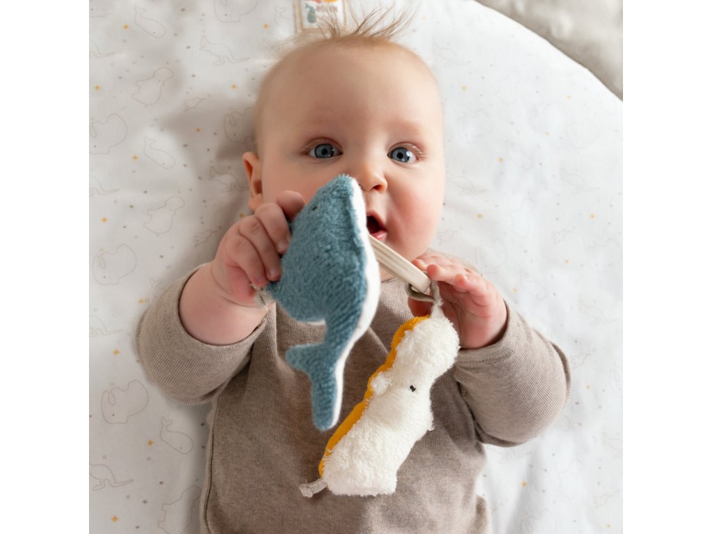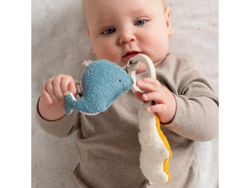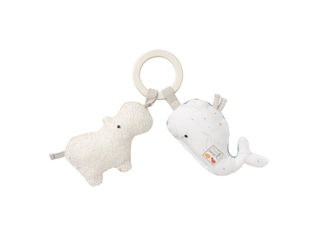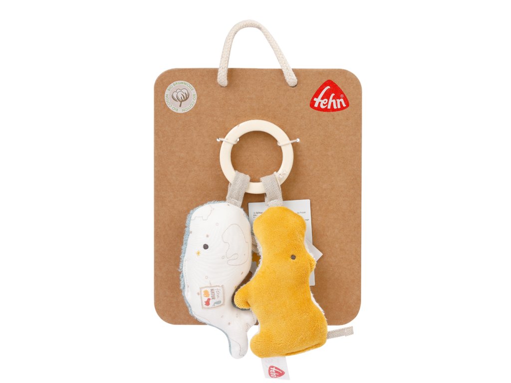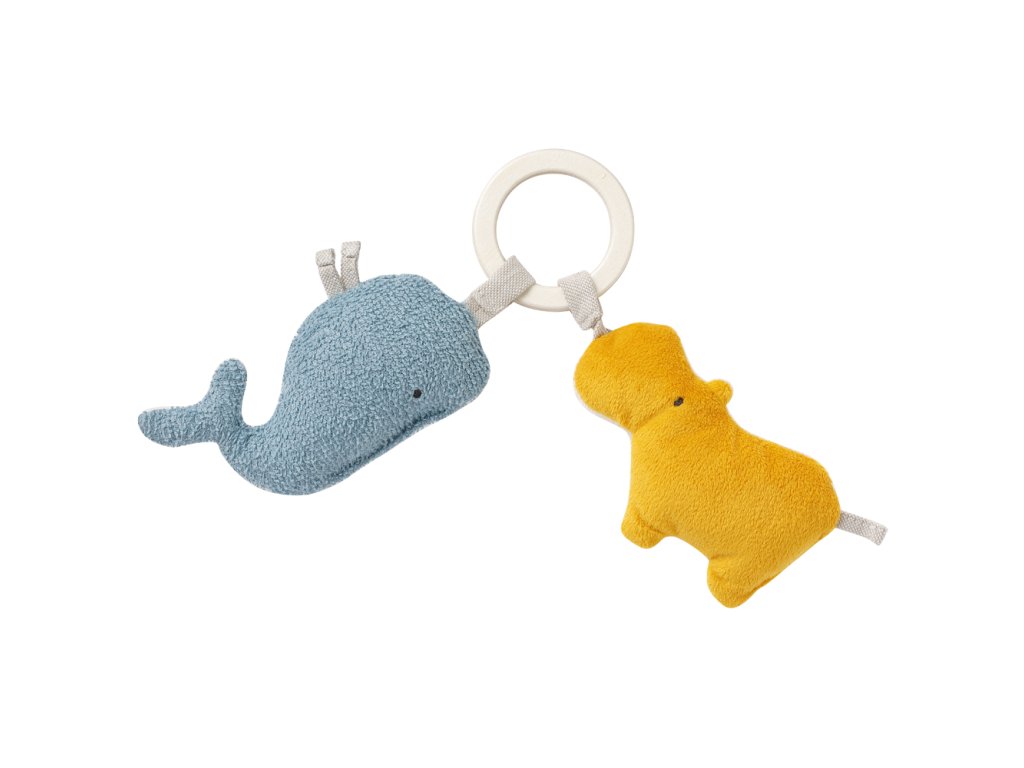 Roztomilá hračka v tvare dvoch malých veselých zvieratiek je hračkou, ktorú si vaše dieťatko na prvý pohľad obľúbi. Vďaka praktickému pútku je možné ju umiestniť na kočík, postieľku, do auta, či kdekoľvek podľa vašich predstáv. Títo prítulní kamaráti sú svojou farebnosťou vhodní ako pre dievčatko, tak pre chlapčeka. Materiál, z ktorého je hračka zhotovená, je veľmi príjemný na dotyk malým detským ručičkám. Zvieratká si získajú hravo pozornosť nielen zvedavých detských očí, ale aj ušiek, pretože v sebe obsahujú i hrkálku.