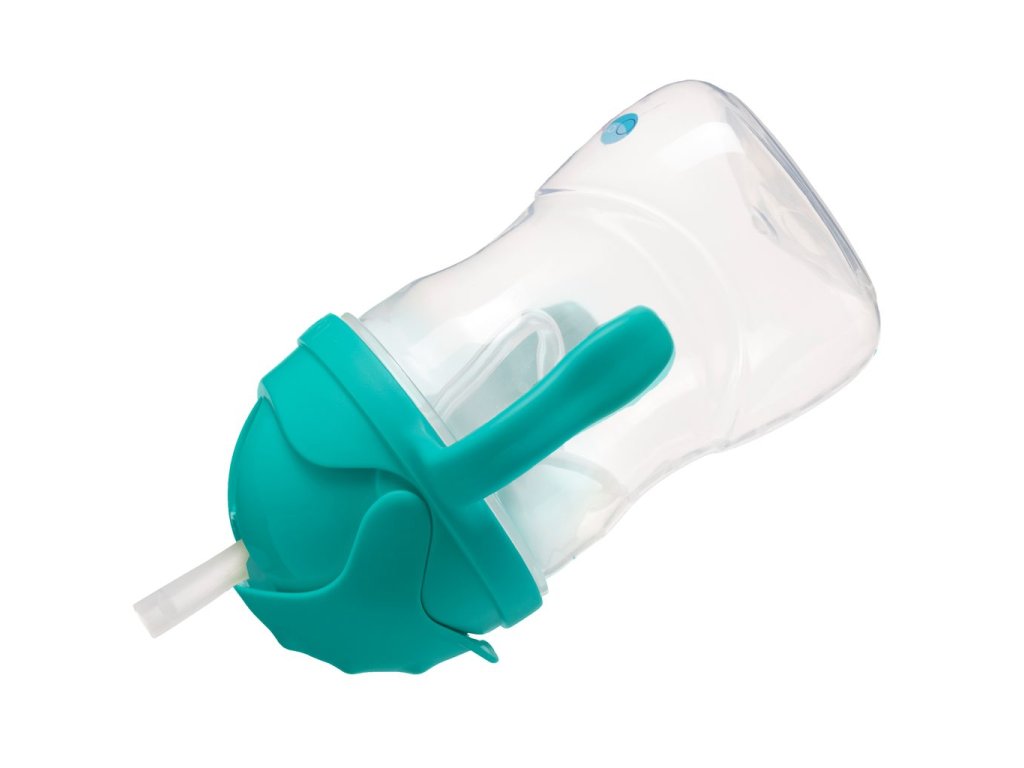 Závažíčko na konci brčka se pohybuje spolu s nápojem a lze tak pít z hrnečku pod jakýmkoli úhlem a umožní tak dětem vypít nápoj až do poslední kapky! Silikonové brčko s dvoucestným ventilem umožňuje snadné pití a zároveň zabrání rozlití. Jednoduché ergonomické úchyty na hrnečku a snadné odklopení víčka podporují samostatnost vašeho dítěte.