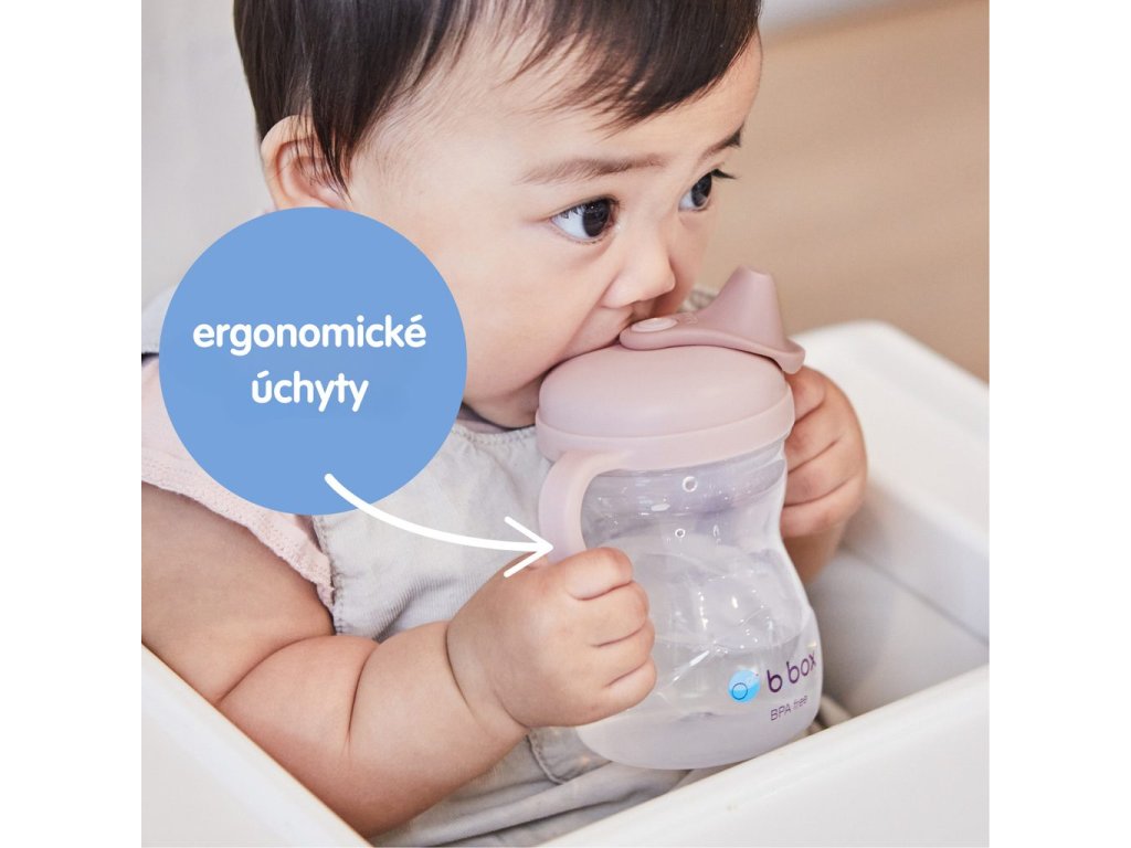 Hrneček od oblíbené australské značky b.box má ergonomicky tvarovanou savičku vyrobenou ze silikonu, která je jemná k dětským dásním. Na víčku hrnečku je připevněný kryt na savičku, takže jej nikdy neztratíte a ochrání savičku před nečistotami. Jednoduché ergonomické úchyty na hrnečku a snadné odklopení víčka podporují samostatnost vašeho dítěte.