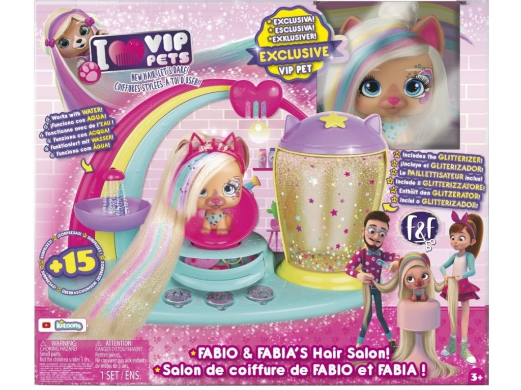 VIP Pets Fabio & Fabia - Hair Salon Playset je ideálny pre deti, ktoré milujú styling a módu. Táto súprava poskytuje hodiny kreatívnej zábavy a je skvelým darčekom pre malé kaderníčky.