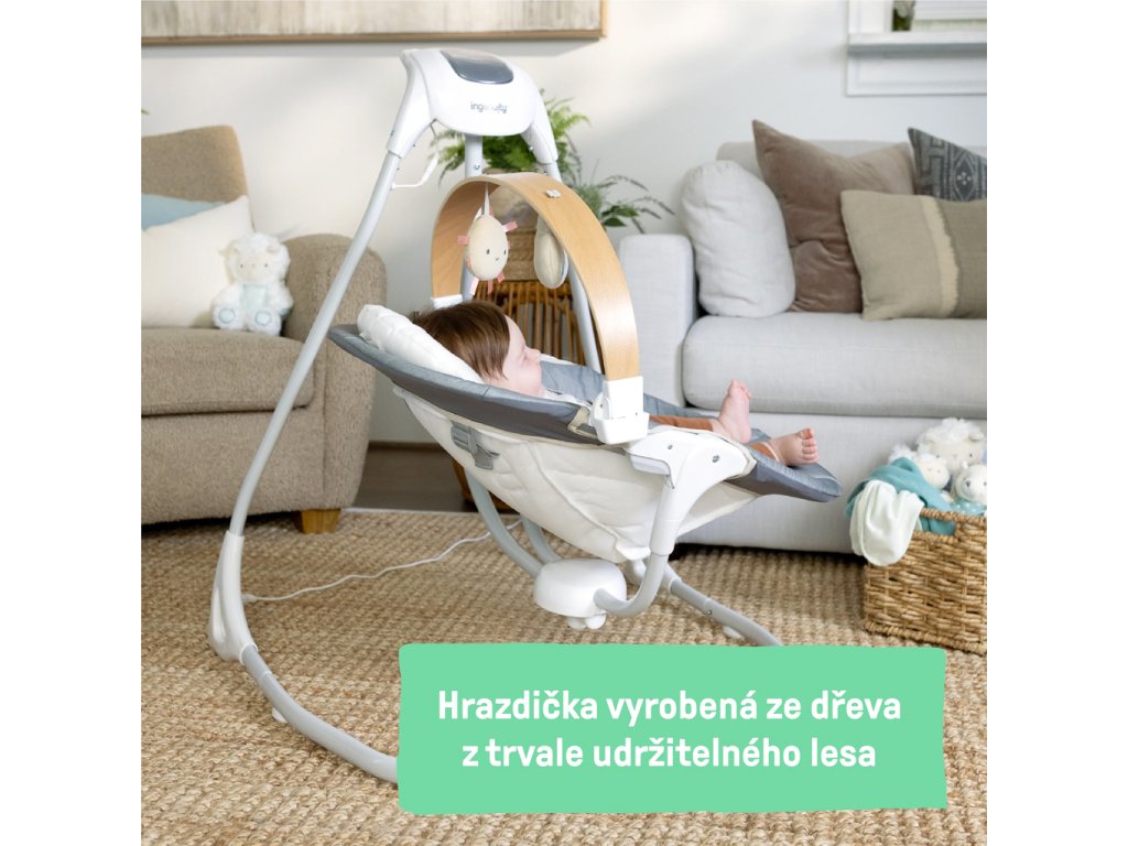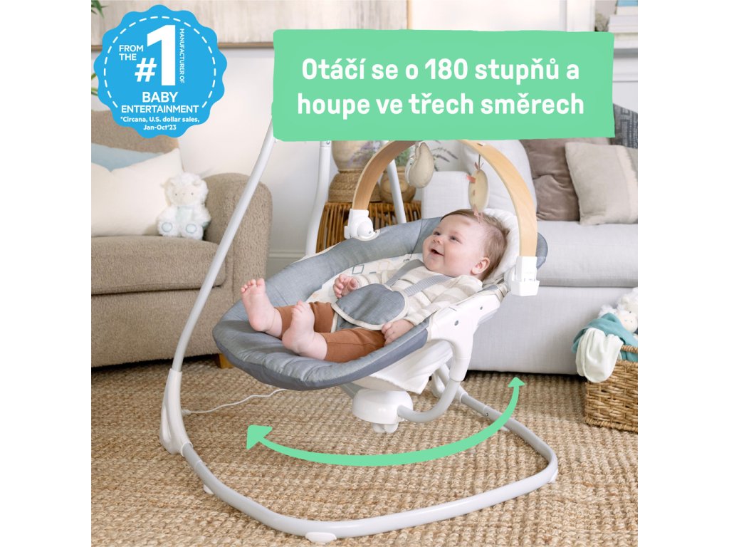 Zabavte dieťatko a zároveň doplňte výzdobu vášho domova s kompaktnou hojdačkou Ingenuity SimpleComfort – Parker.