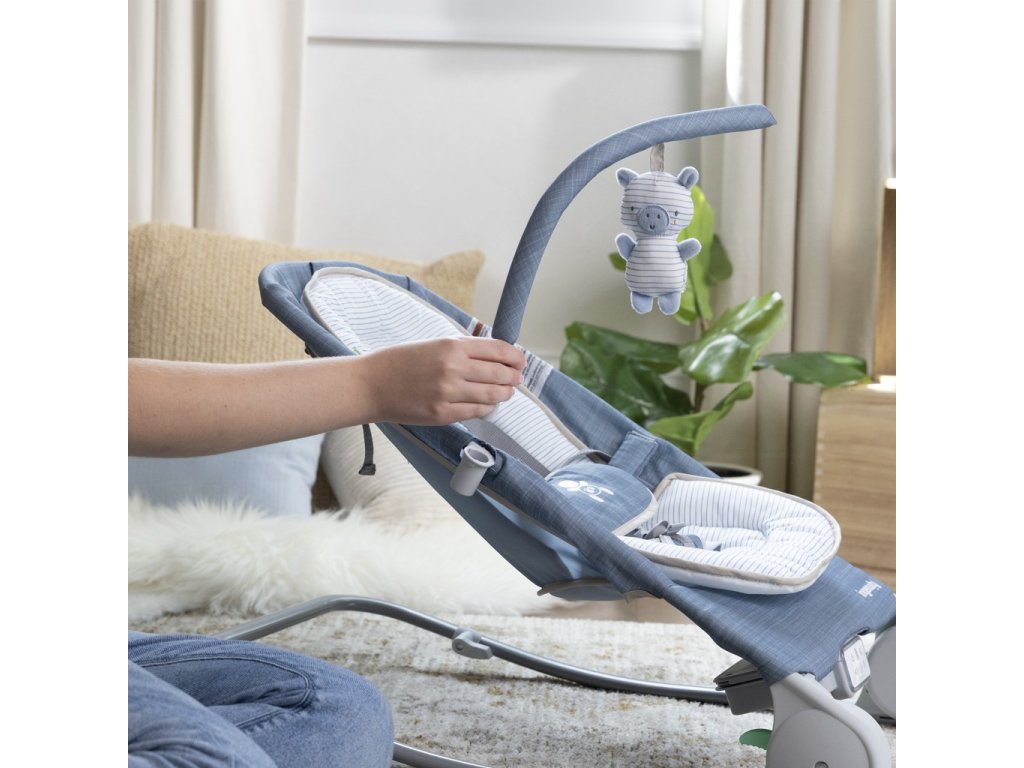 Sedadlo sa plynule premení z lehátka na húpatko a ponúka plyšovú detskú vložku a 5-bodové pásy udržujú dieťa v pohodlí a bezpečí. Skladá sa naplocho pre ľahké skladovanie a obsahuje tašku na prenášanie pre ľahké cestovanie. Súčasťou je odnímateľná hrazdička s mäkkou plyšovou postavičkou zebry Cesi™.