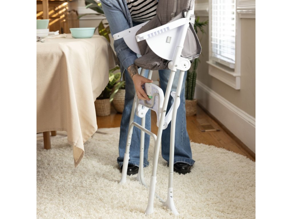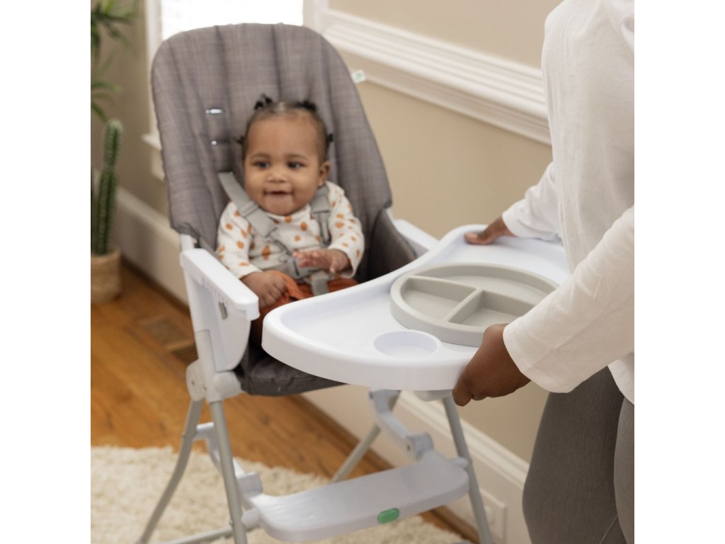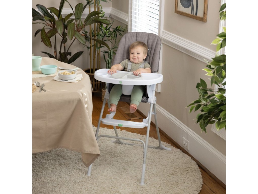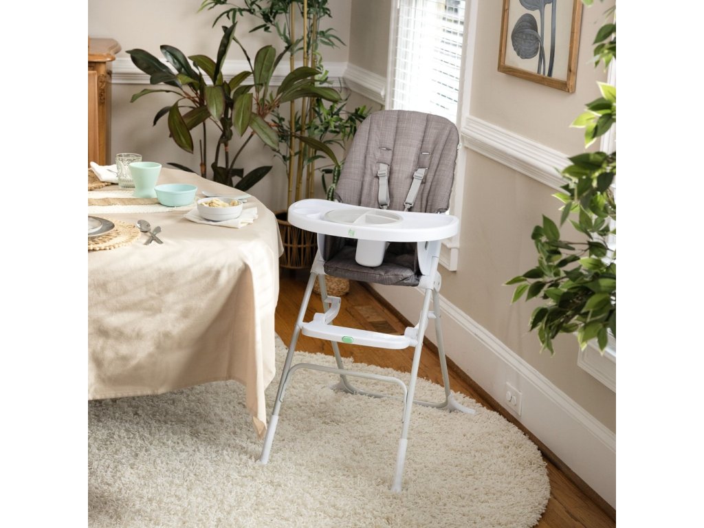 Ušetrite miesto vo svojom dome a doprajte dieťaťu vynikajúci zážitok z jedla s kompaktnou skladacou vysokou stoličkou ity by Ingenuity Sun Valley. Ľahká, moderná vysoká stolička má kompaktný dizajn pre ľahké skladovanie a prenosnosť. Táto štíhla stolička sa dá zložiť naplocho a keď je zložená, sama stojí.