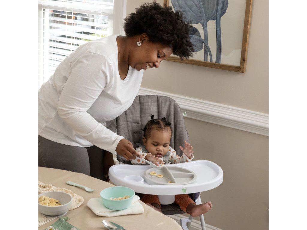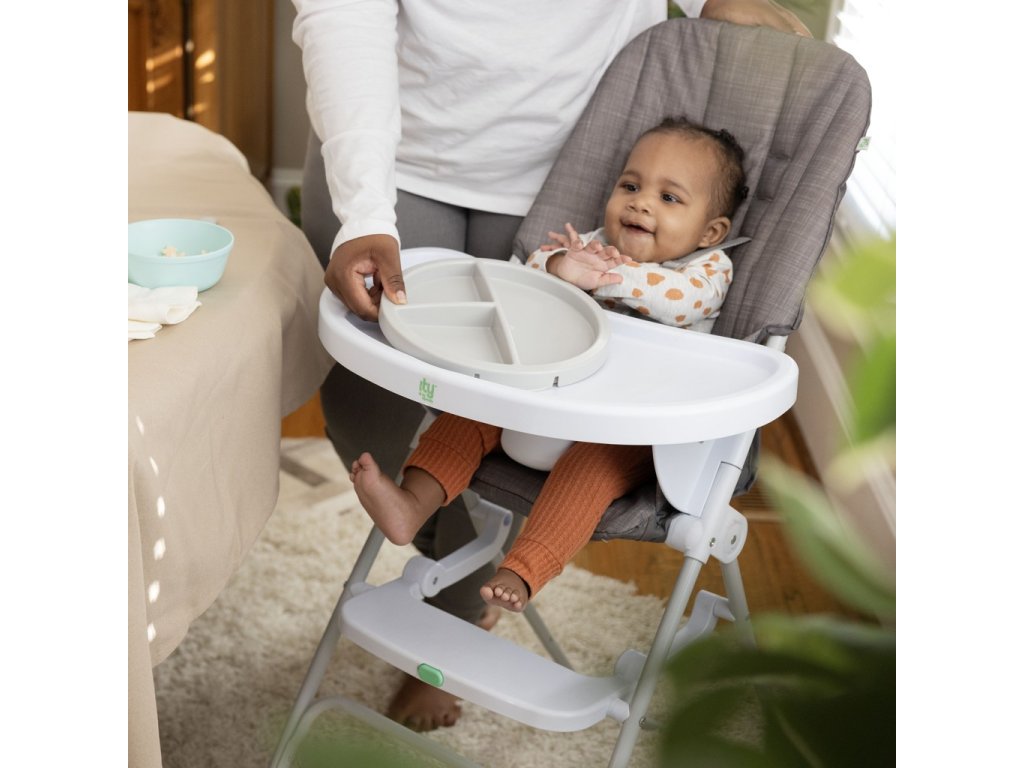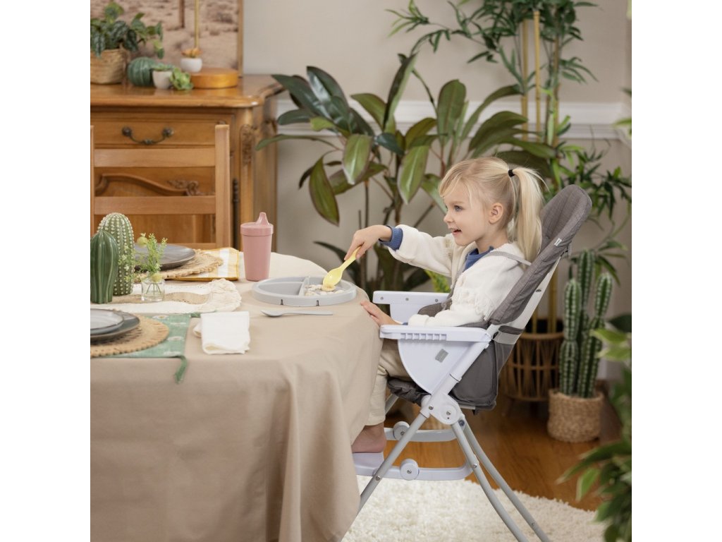- Príprava jedla bude pre rodičov jednoduchá, pretože tanier Twist & Dine je možné ohrievať v mikrovlnnej rúre! Okrem toho, ako dieťa rastie, veľký pultík sa nastavuje do 3 polôh; pultík sa pri skladovaní pripevňuje k operadlu stoličky.