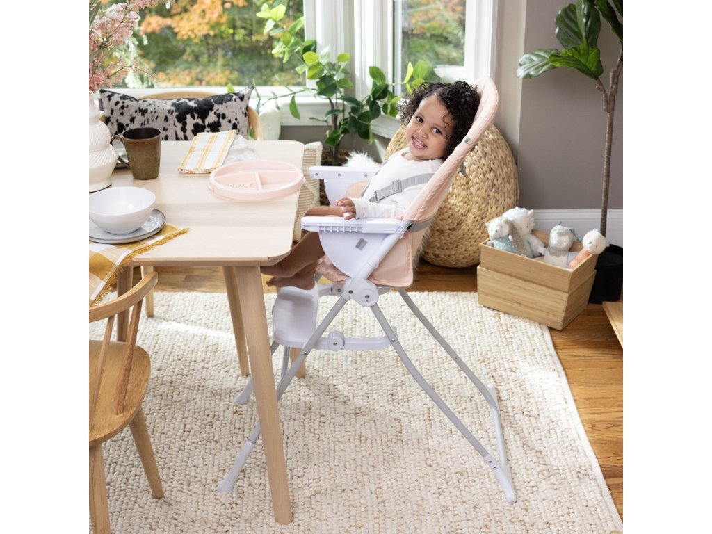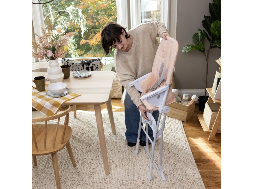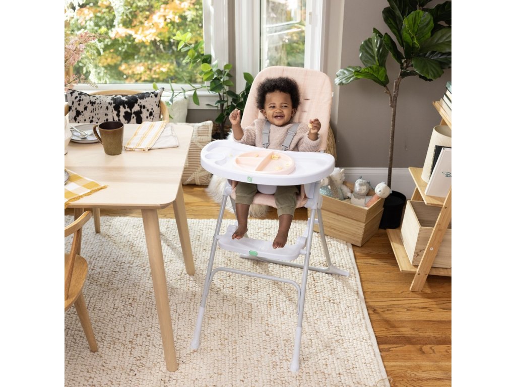 Ušetrite miesto vo svojom dome a doprajte dieťaťu vynikajúci zážitok z jedla s kompaktnou skladacou vysokou stoličkou ity by Ingenuity Sun Valley. Ľahká, moderná vysoká stolička má kompaktný dizajn pre ľahké skladovanie a prenosnosť. Táto štíhla stolička sa dá zložiť naplocho a keď je zložená, sama stojí.