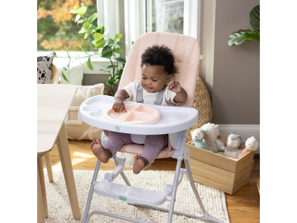 Kompaktná skladacia vysoká stolička ity od Ingenuity Sun Valley je súčasťou kolekcie Sun Valley. Táto detská vysoká stolička je určená pre deti vo veku od 6 mesiacov do 3 rokov alebo do 15kg, podľa toho, čo nastane skôr. Bezpečnosť je testovaná a schválená treťou stranou. Skvelý darček pre čerstvých rodičov, starých rodičov a opatrovateľov s funkciou šetriacou priestor.