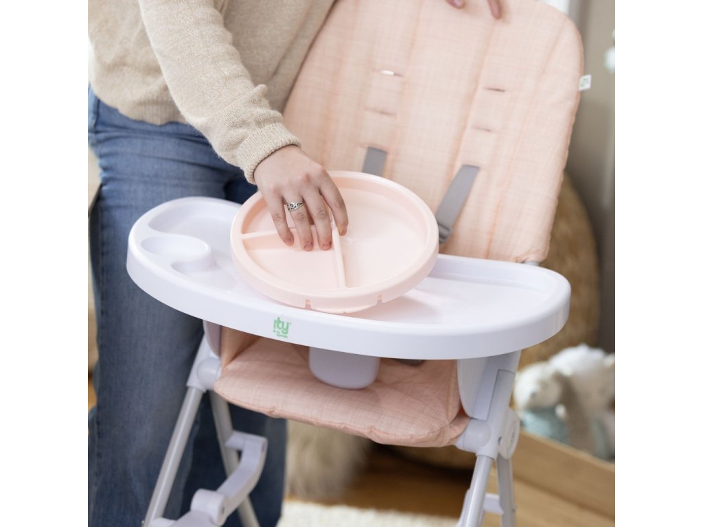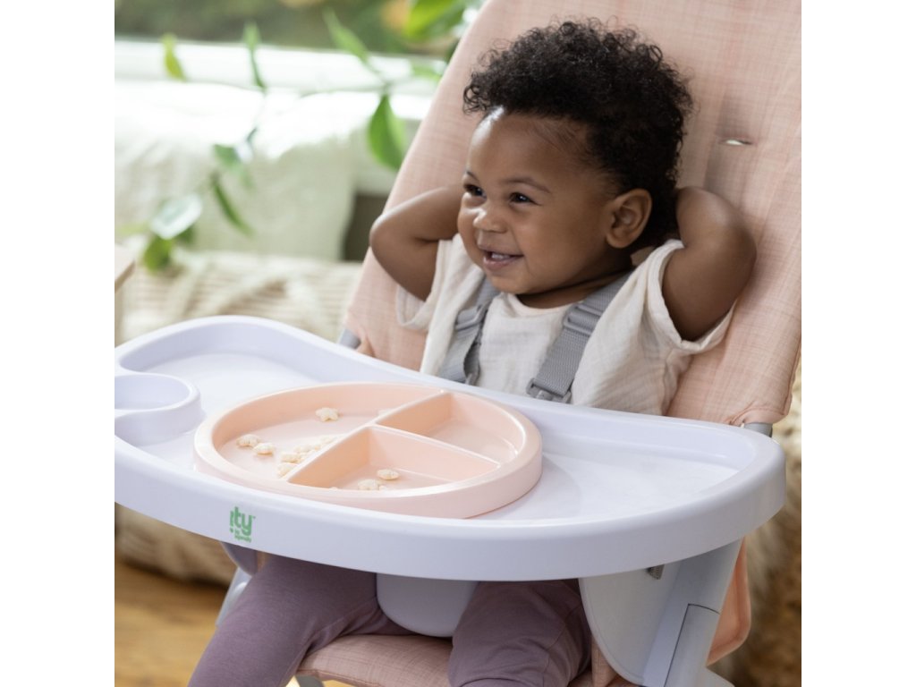 - Príprava jedla bude pre rodičov jednoduchá, pretože tanier Twist & Dine je možné ohrievať v mikrovlnnej rúre! Okrem toho, ako dieťa rastie, veľký pultík sa nastavuje do 3 polôh; pultík sa pri skladovaní pripevňuje k operadlu stoličky.