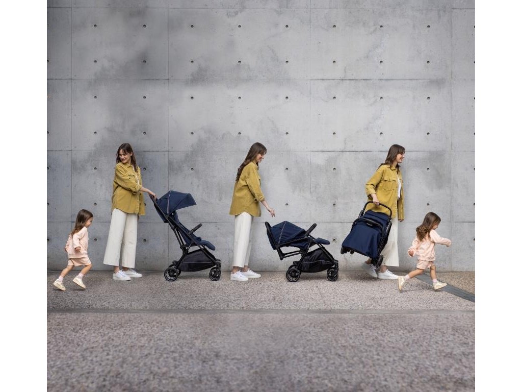 Špeciálne automatické skladanie sa aktivuje dotykom a v okamihu sa kočík sám zloží. Po zložení zostane stáť s rukoväťou nahor, takže ani rukoväť ani poťah sa nedotýkajú zeme, preto všade zachováte maximálnu hygienu.