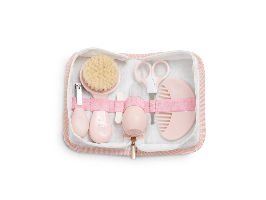 Sada osahuje kefu s prírodnými štetinami, hrebeň so zaoblenými hrotmi, nožnice so zaoblenou špičkou, nosnú odsávačku s pružnou a mäkkou špičkou, klieštiky a pilníček na nechty. Univerzálna súprava je ideálna na cesty aj na domáce použitie.