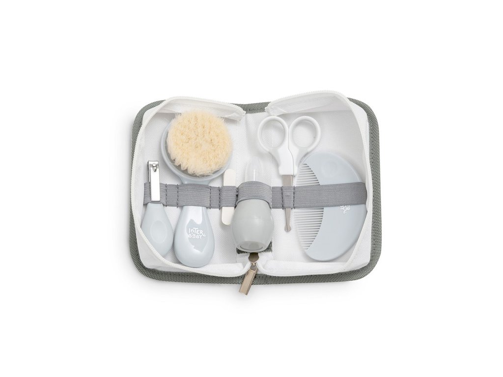 Sada osahuje kefu s prírodnými štetinami, hrebeň so zaoblenými hrotmi, nožnice so zaoblenou špičkou, nosnú odsávačku s pružnou a mäkkou špičkou, klieštiky a pilníček na nechty. Univerzálna súprava je ideálna na cesty aj na domáce použitie.