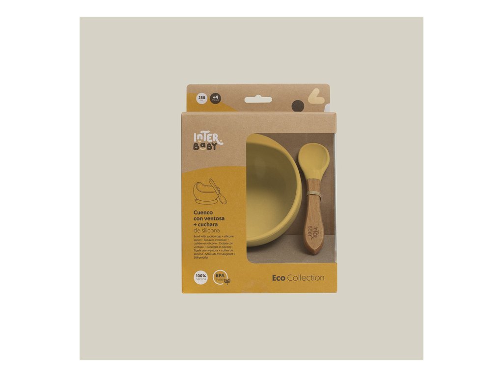 INTERBABY | MISKA silikonová + LYŽIČKA silikonová +4 m - okrová